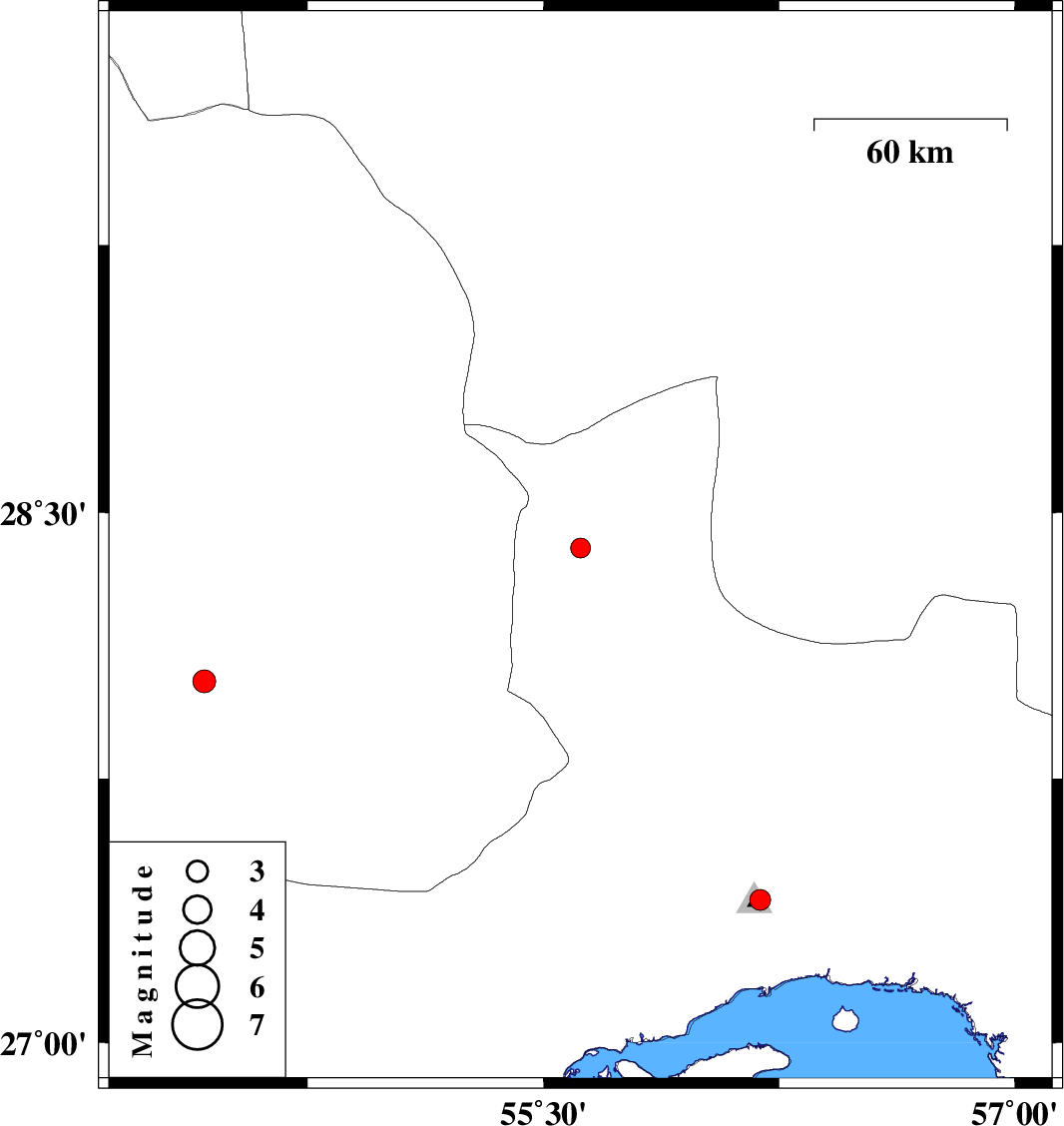| 2017/03/13 | 05:11:16.6 | 08:41:16.6 | 27.406 | 56.19 | 14 | ML2.9 | Hormozgan Province, 26 km North of Bandar-e abbas |