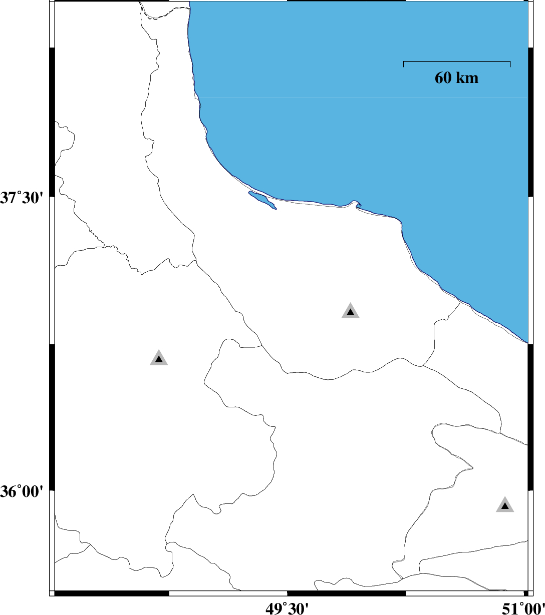 | 2017/10/01 | 19:55:05.2 | 23:25:05.2 | 36.981 | 49.525 | 6 | ML2.9 | Gilan Province, 20 km North of Rudbar | ||