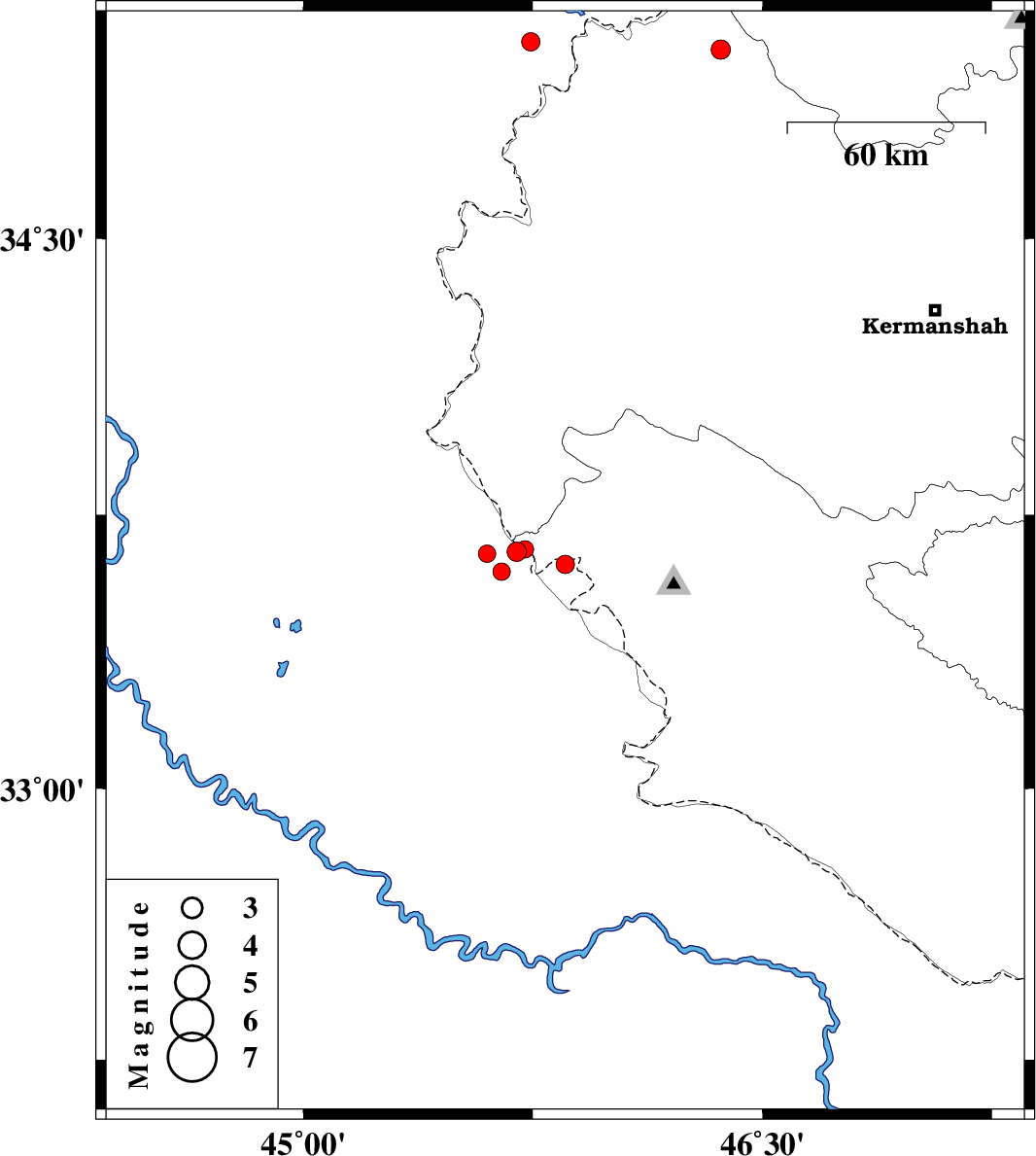 2017/10/05 13:07:50.8 16:37:50.8 33.65645.7250 ML2.6 Ilam Province, 57 km South-West of Gilan-E-Gharb