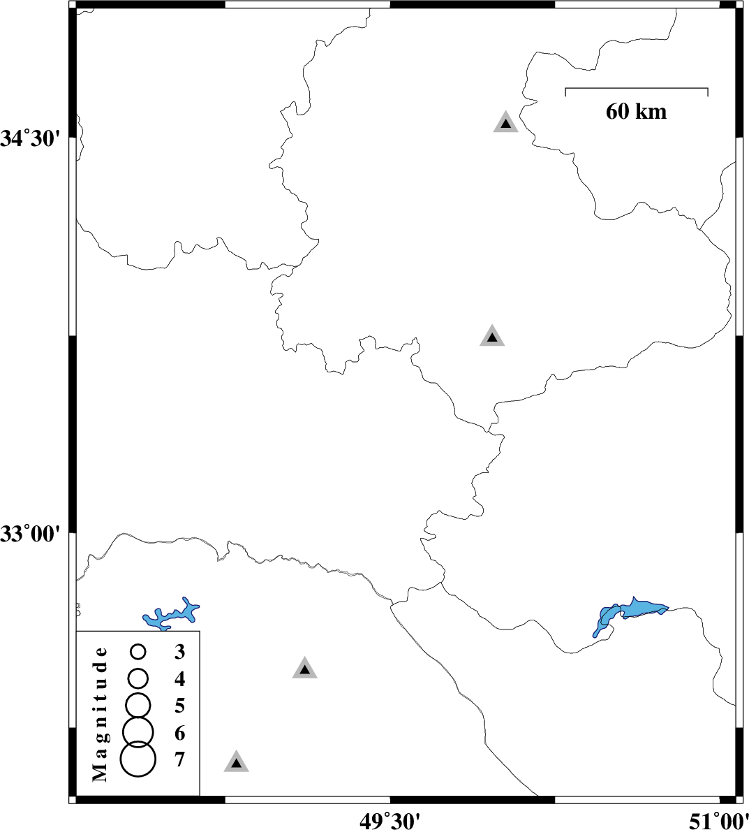 | 2017/10/13 | 21:43:53.9 | 01:13:53.9 | 33.485 | 49.572 | 8 | ML2.6 | Lorestan Province, 11 km -East of Azna |