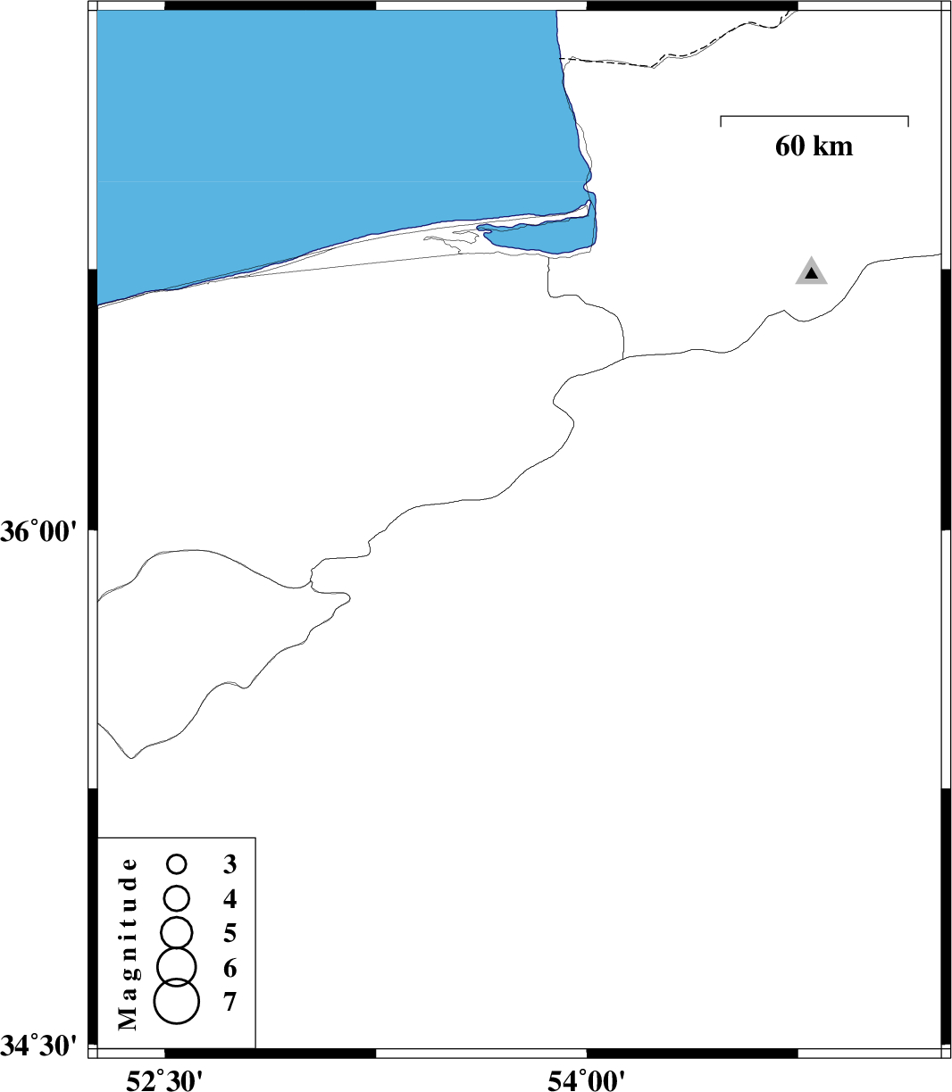 | 2017/10/11 | 06:10:26.2 | 09:40:26.2 | 35.987 | 53.76 | 14 | ML2.6 | Semnan Province, 57 km South-West of Damghan |