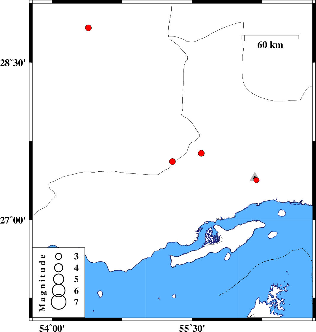 | 2017/10/08 | 08:47:00.9 | 12:17:00.9 | 27.636 | 55.598 | 6 | ML3 | Hormozgan Province, 81 km South-West of Hajiabad |