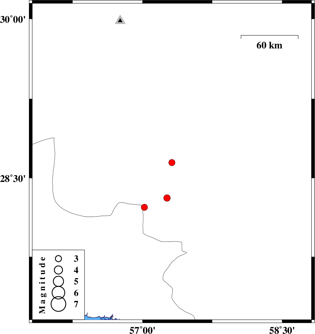 2017/10/11 20:09:22.4 23:39:22.4 28.22257.02114 ML3.1 Kerman Province, 73 km North-West of Kahnuj