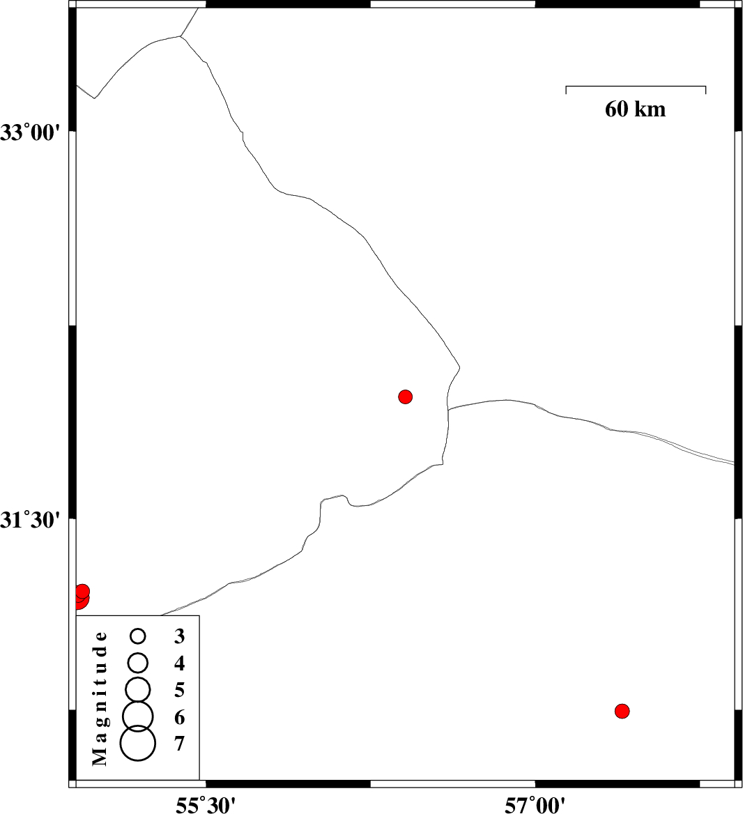 | 2017/10/22 | 04:10:21.5 | 07:40:21.5 | 31.973 | 56.408 | 14 | ML2.8 | Yazd Province, 87 km North-West of Ravar | ||