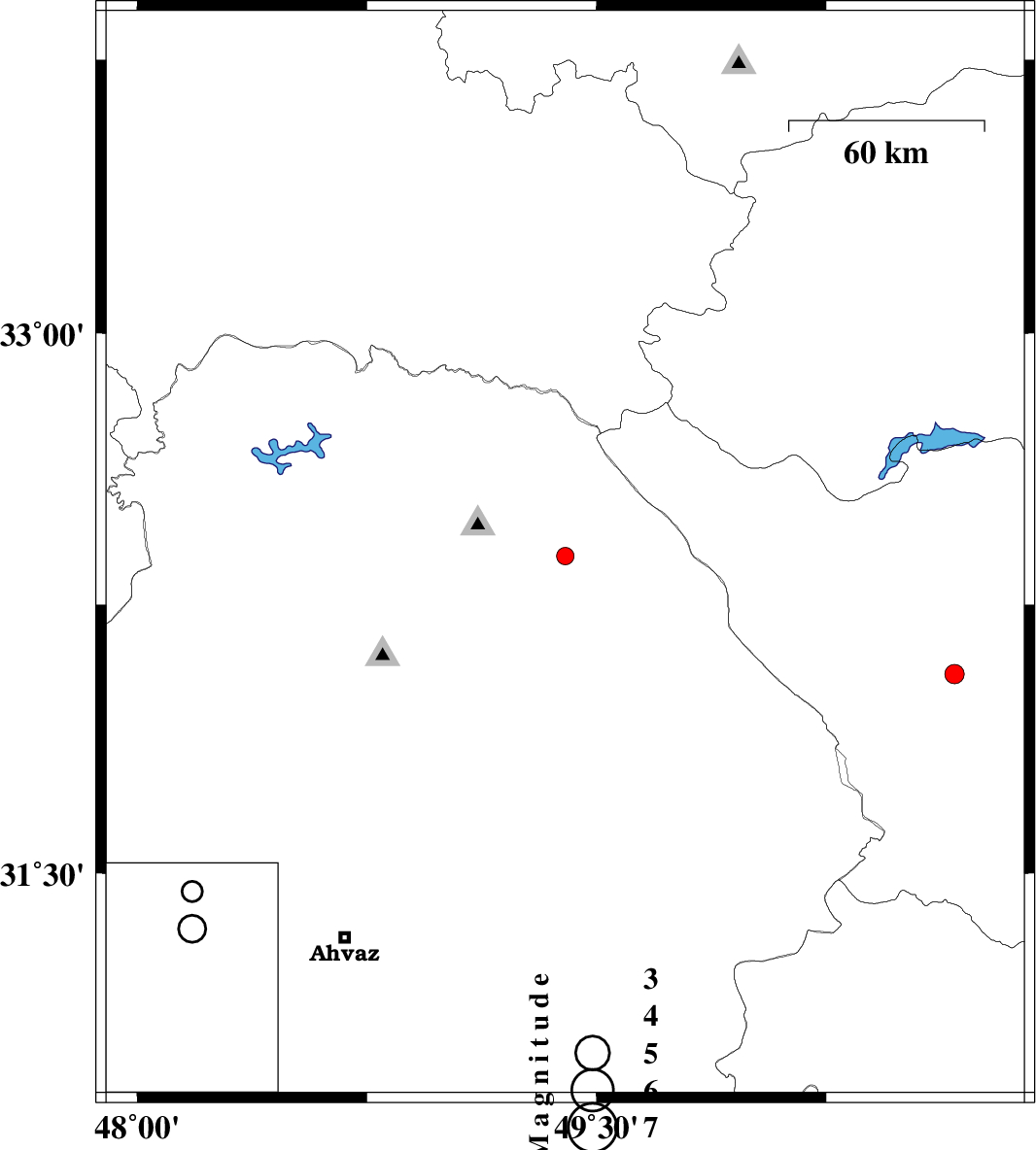 2017/10/25 | 09:06:05.9 | 12:36:05.9 | 32.385 | 49.398 | 14 | ML2.6 | Khoozestan Province, 27 km -East of Lali | ||