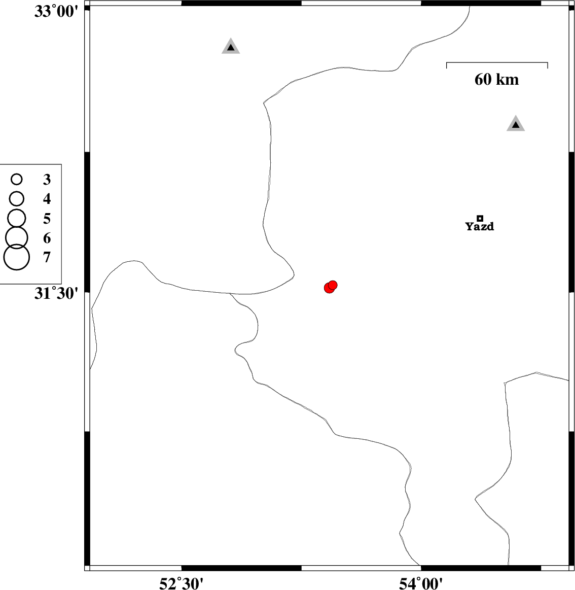 | 2017/10/31 | 19:20:05.7 | 22:50:05.7 | 31.539 | 53.446 | 14 | ML2.5 | Yazd Province, 48 km North-East of Abarkuh | ||