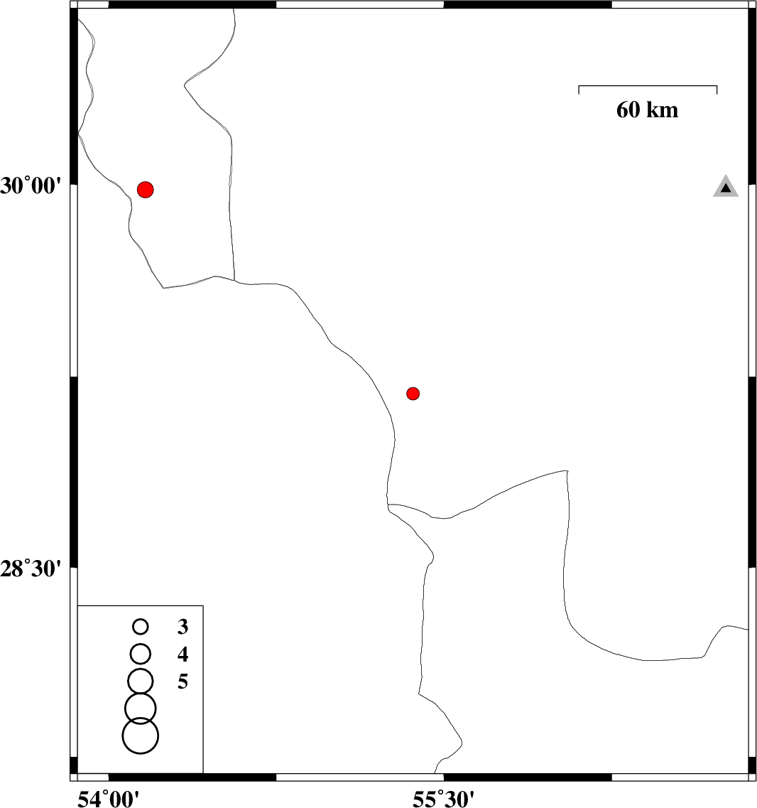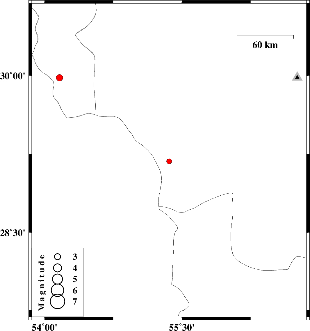 | 2017/11/04 | 18:50:09.2 | 22:20:09.2 | 29.98 | 54.165 | 15 | ML3.2 | Yazd Province, 21 km -West of Harat |