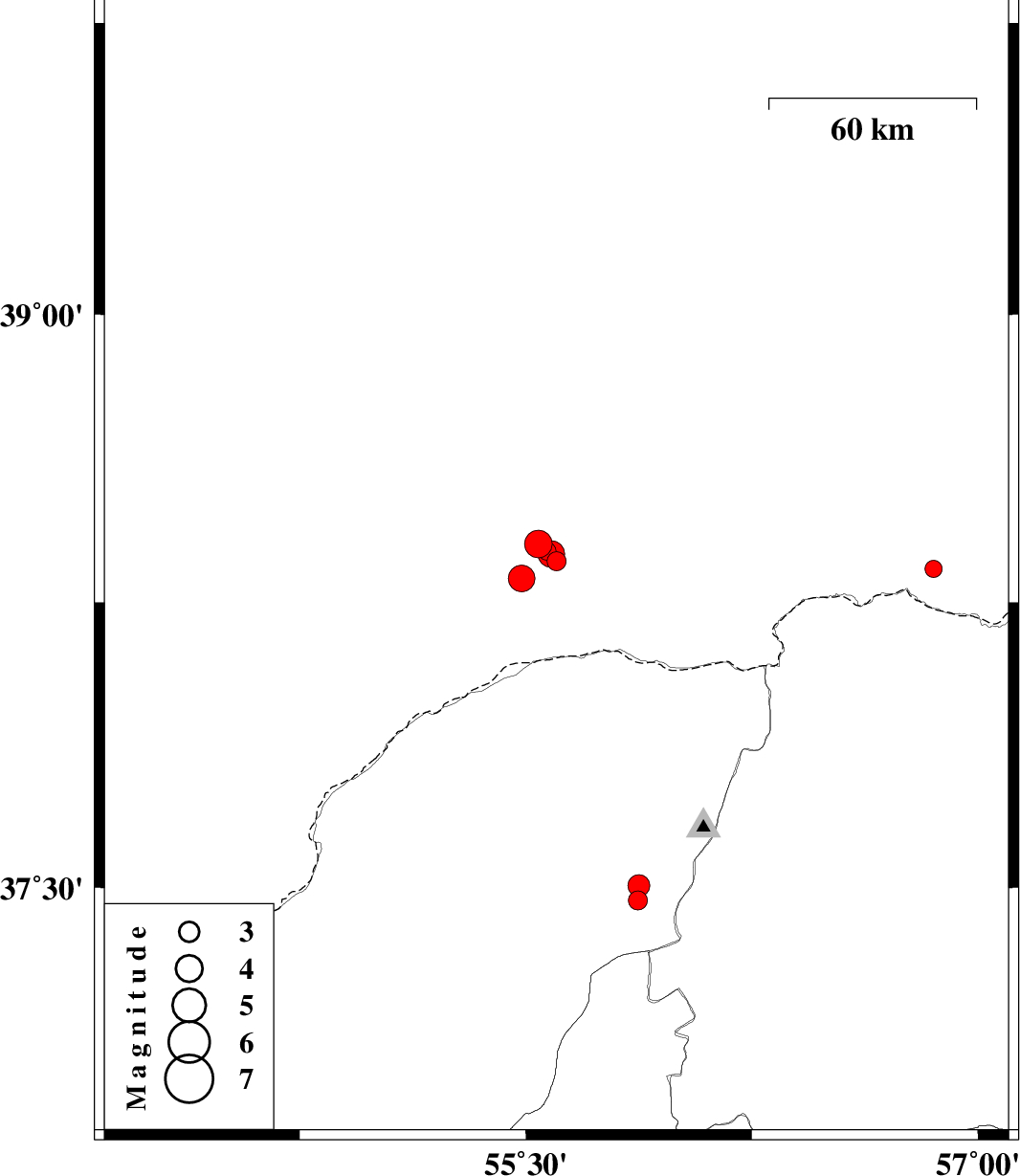 | 2017/03/16 | 00:48:25.7 | 04:18:25.7 | 37.505 | 55.876 | 16 | ML3.2 | Golestan Province, 37 km North-East of Kalaleh | ||