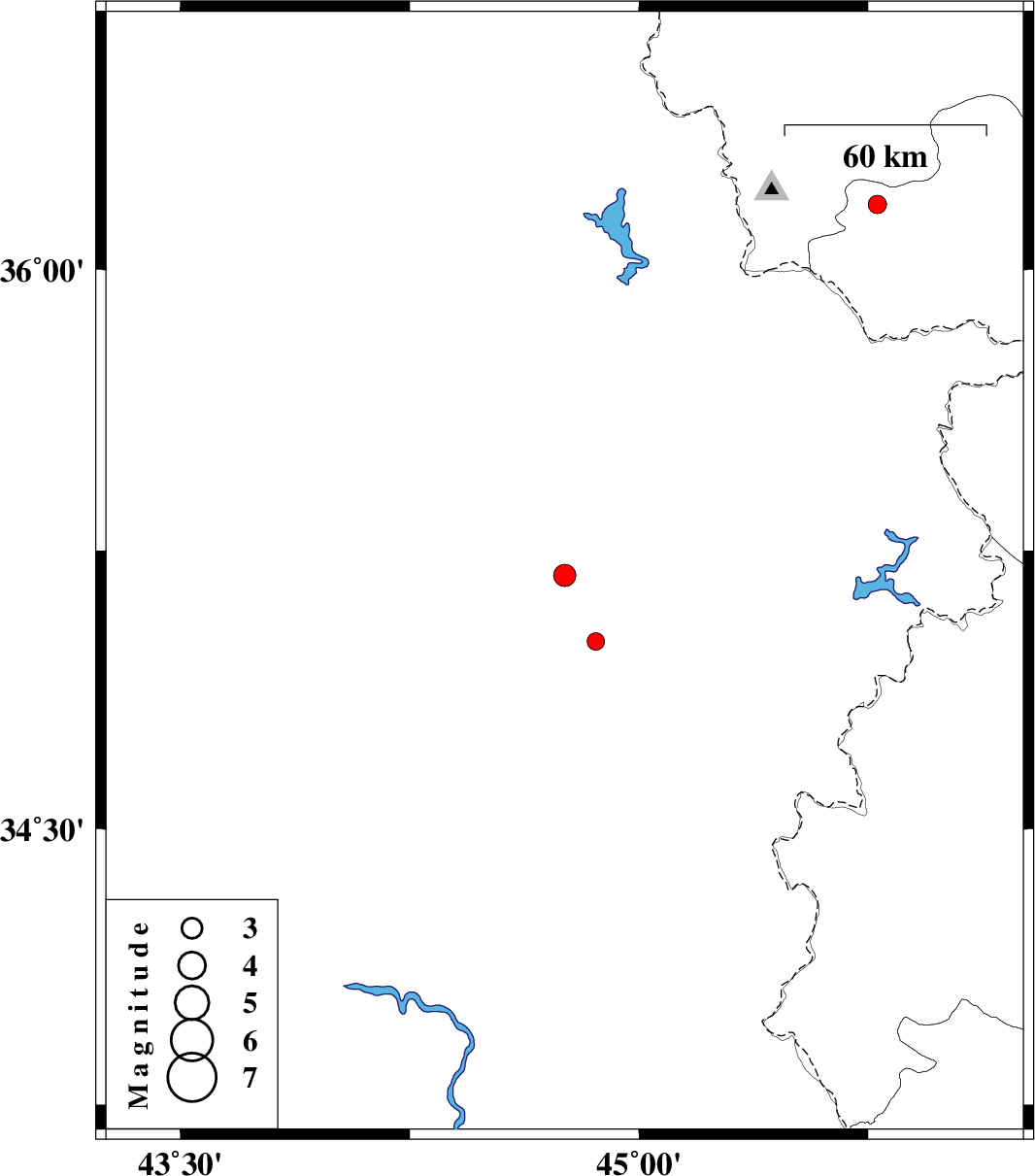 | 2017/11/07 | 13:59:20.2 | 17:29:20.2 | 35.006 | 44.859 | 14 | ML2.6 | Iraq, 81 km South-West of Sulaymaniyah | ||