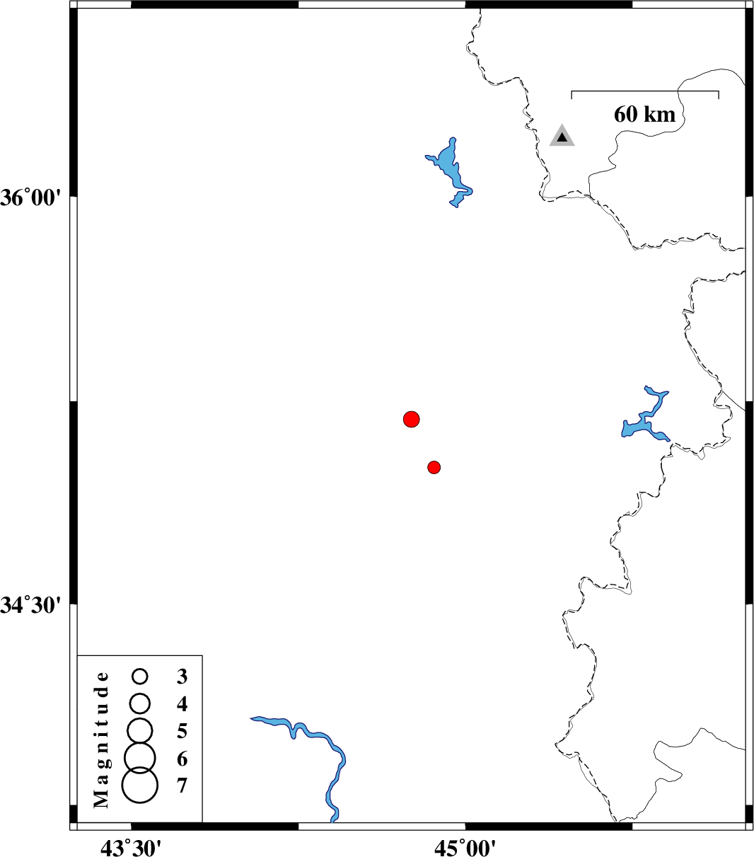 | 2017/11/07 | 13:59:20.2 | 17:29:20.2 | 35.006 | 44.859 | 14 | ML2.6 | Iraq, 81 km South-West of Sulaymaniyah |
