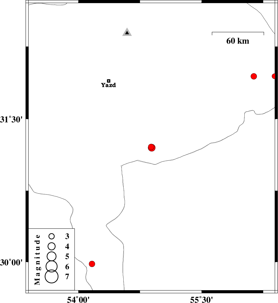 | 2017/11/09 | 12:22:42.8 | 15:52:42.8 | 31.2 | 54.892 | 15 | ML4 | Yazd Province, 60 km South-East of Mehriz | ||