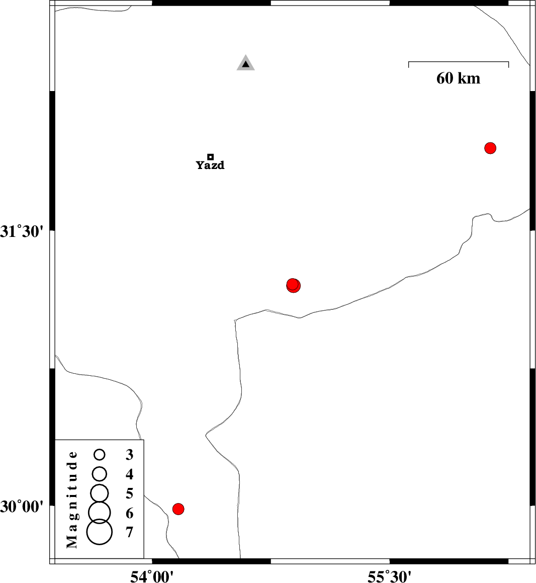 | 2017/11/09 | 12:22:42.8 | 15:52:42.8 | 31.2 | 54.892 | 15 | ML4 | Yazd Province, 60 km South-East of Mehriz | ||