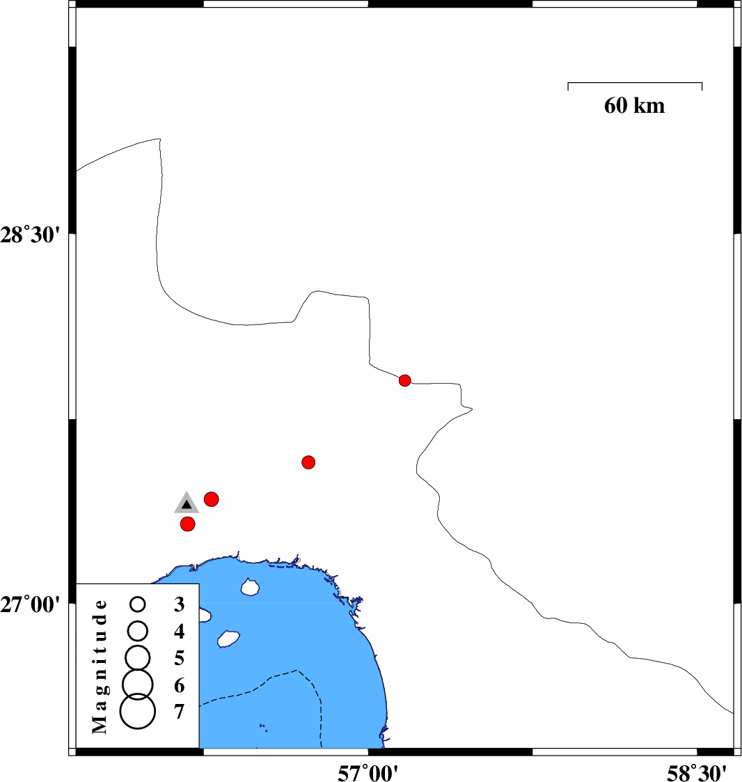 | 2017/11/06 | 17:14:42.4 | 20:44:42.4 | 27.324 | 56.176 | 14 | ML3 | Hormozgan Province, 19 km North-West of Bandar-e abbas |