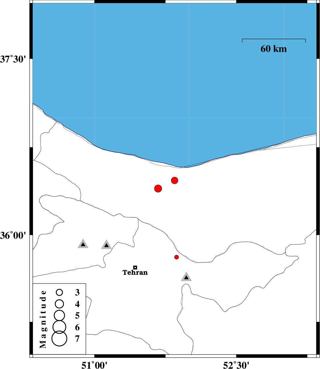 | 2017/11/12 | 00:42:43.5 | 04:12:43.5 | 36.467 | 51.847 | 15 | ML3.3 | Mazandaran Province, 20 km South-West of Nur | ||