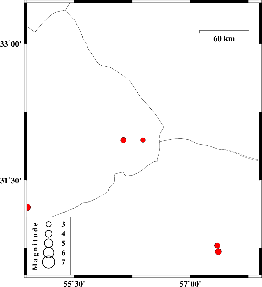 | 2017/11/06 | 21:55:14.1 | 01:25:14.1 | 30.773 | 57.348 | 6 | ML3.3 | Kerman Province, 60 km North-East of Kerman | ||