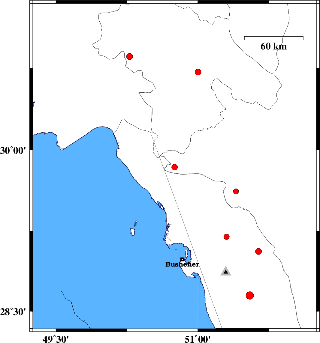 |  | 2017/11/07 | 11:20:15.9 | 14:50:15.9 | 28.649 | 51.55 | 17 | ML3.6 | Bushehr Province, 17 km -East of Khormog |  |