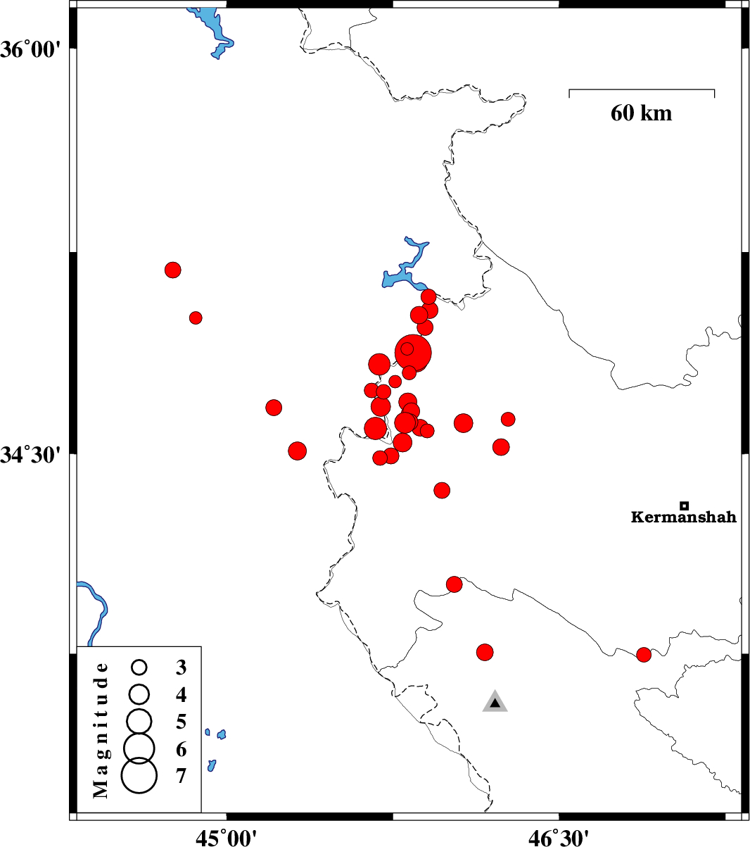 2017/11/12 21:42:36.7 01:12:36.7 34.58645.9045 ML2.8 Kermanshah Province, 14 km North of Sar-e pol-e zahab