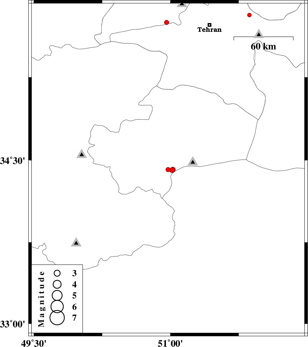 | 2017/11/28 | 07:40:18.2 | 11:10:18.2 | 35.742 | 50.958 | 15 | ML2.3 | Tehran Province, 7 km of Karaj | ||
