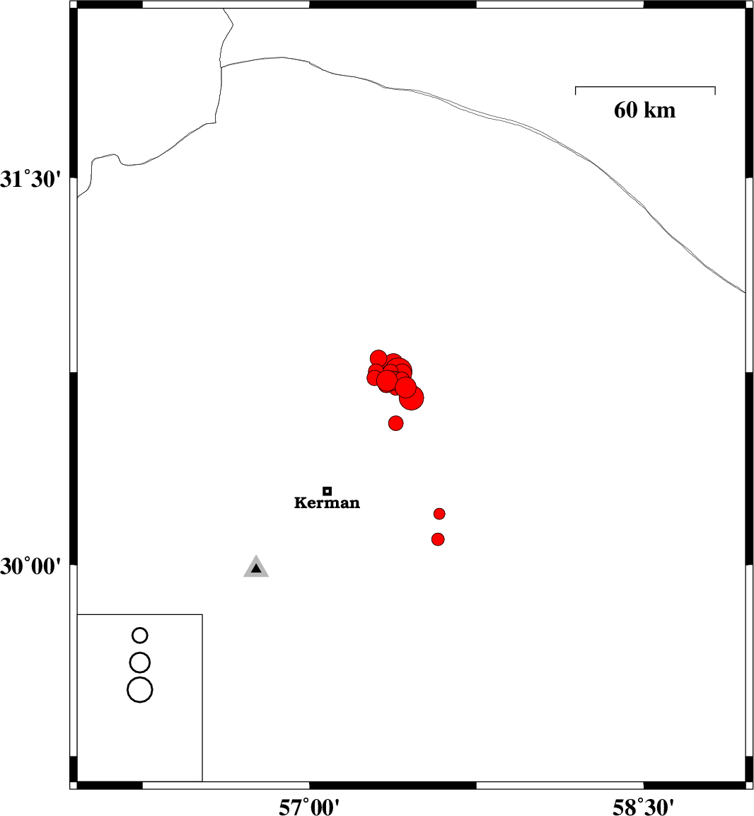 2017/12/01 02:51:48.8 06:21:48.8 30.72357.40214 ML3.7 Kerman Province, 57 km North-East of Kerman