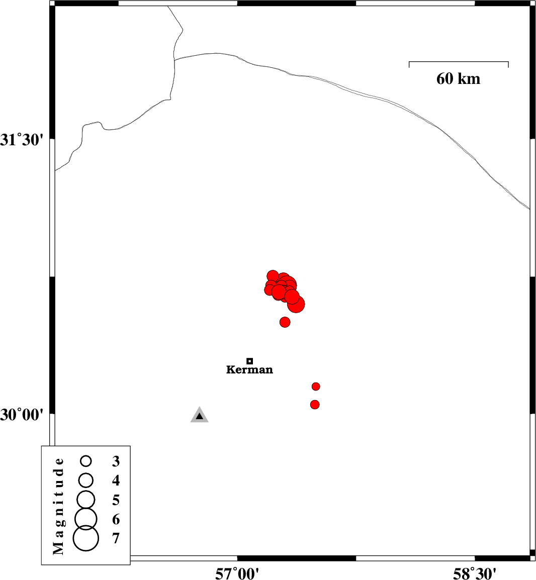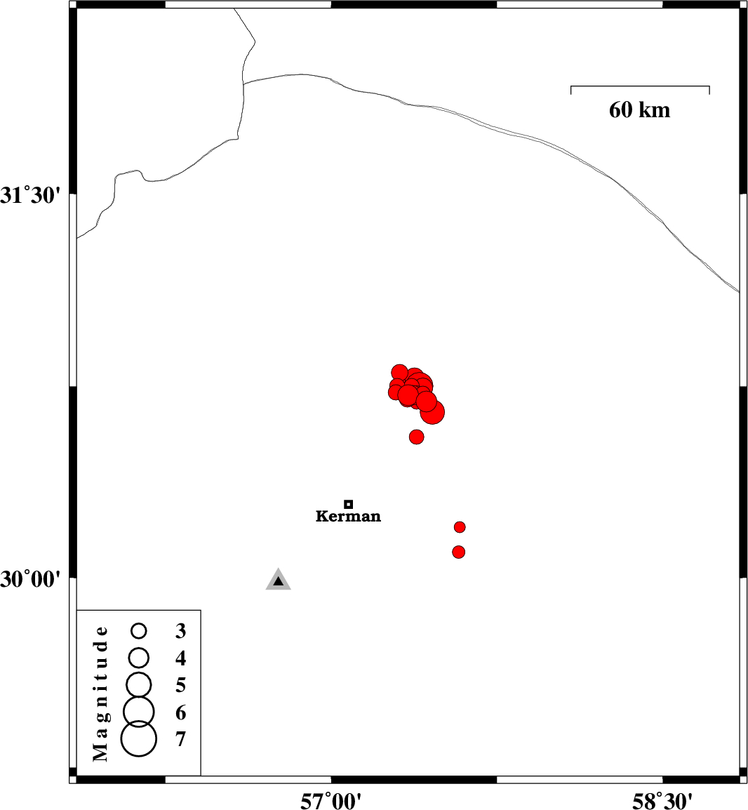 2017/12/01 04:33:27.2 08:03:27.2 30.72757.38814 ML2.7 Kerman Province, 57 km North-East of Kerman
