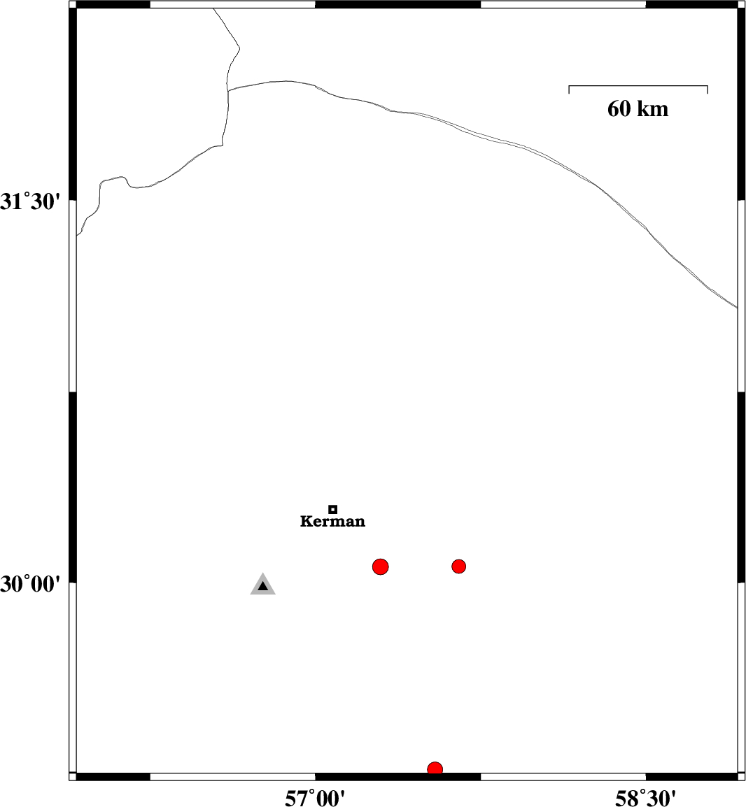 2017/12/01 04:02:09.2 07:32:09.2 30.71157.42216 ML3 Kerman Province, 57 km North-East of Kerman