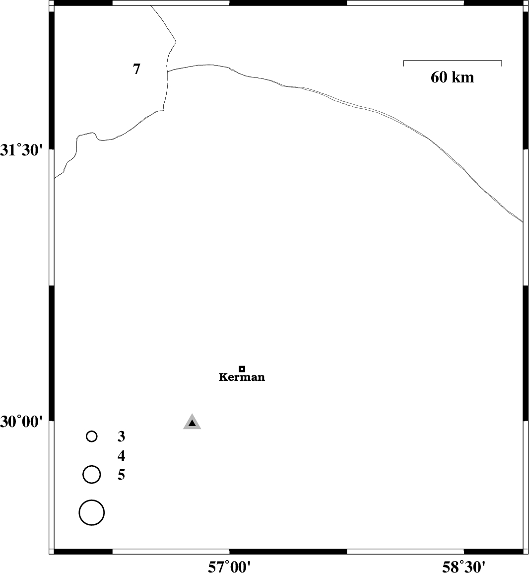 2017/12/01 04:02:09.2 07:32:09.2 30.71157.42216 ML3 Kerman Province, 57 km North-East of Kerman