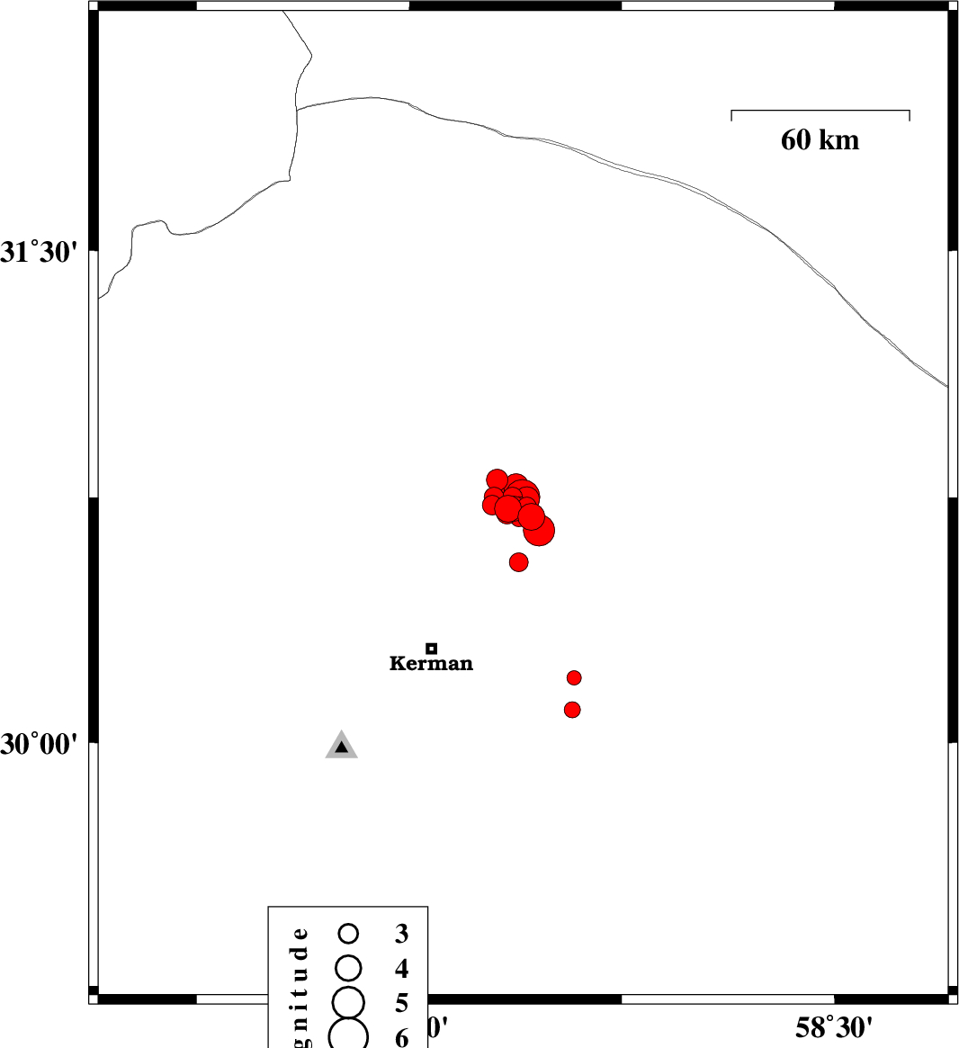 2017/12/01 03:35:00.5 07:05:00.5 30.75257.39916 ML5.5 Kerman Province, 60 km North-East of Kerman