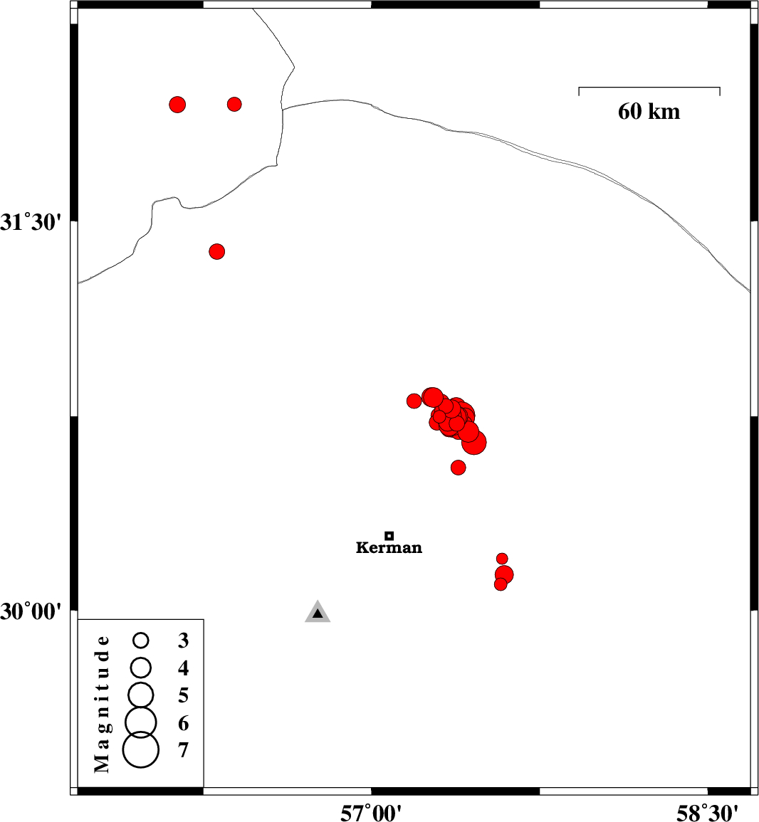 2017/12/02 10:50:40.4 14:20:40.4 30.75157.35615 ML4.1 Kerman Province, 58 km North-East of Kerman