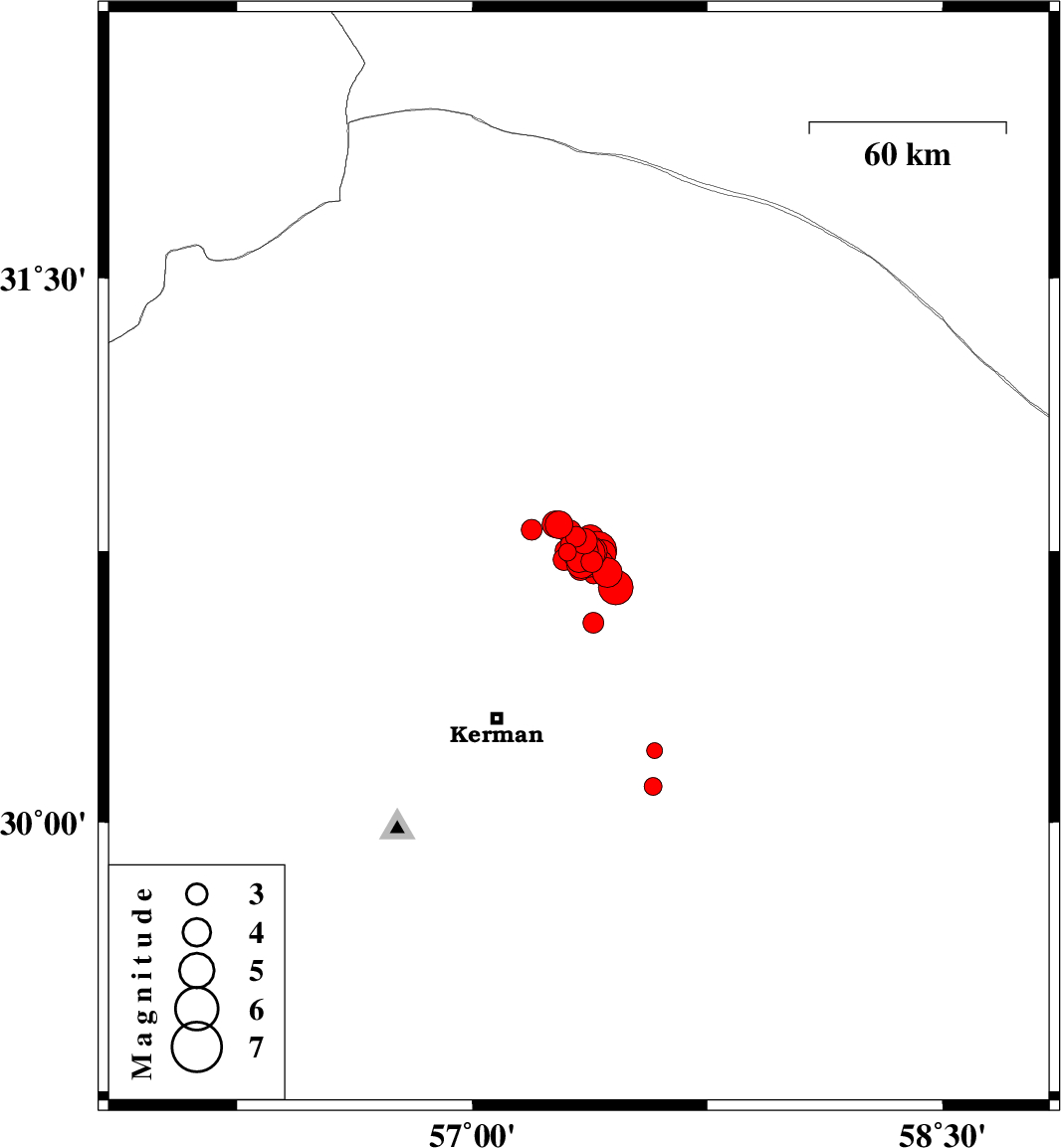 |  | 2017/12/02 | 12:40:47.0 | 16:10:47.0 | 30.778 | 57.357 | 14 | ML3.7 | Kerman Province, 61 km North-East of Kerman |  |
