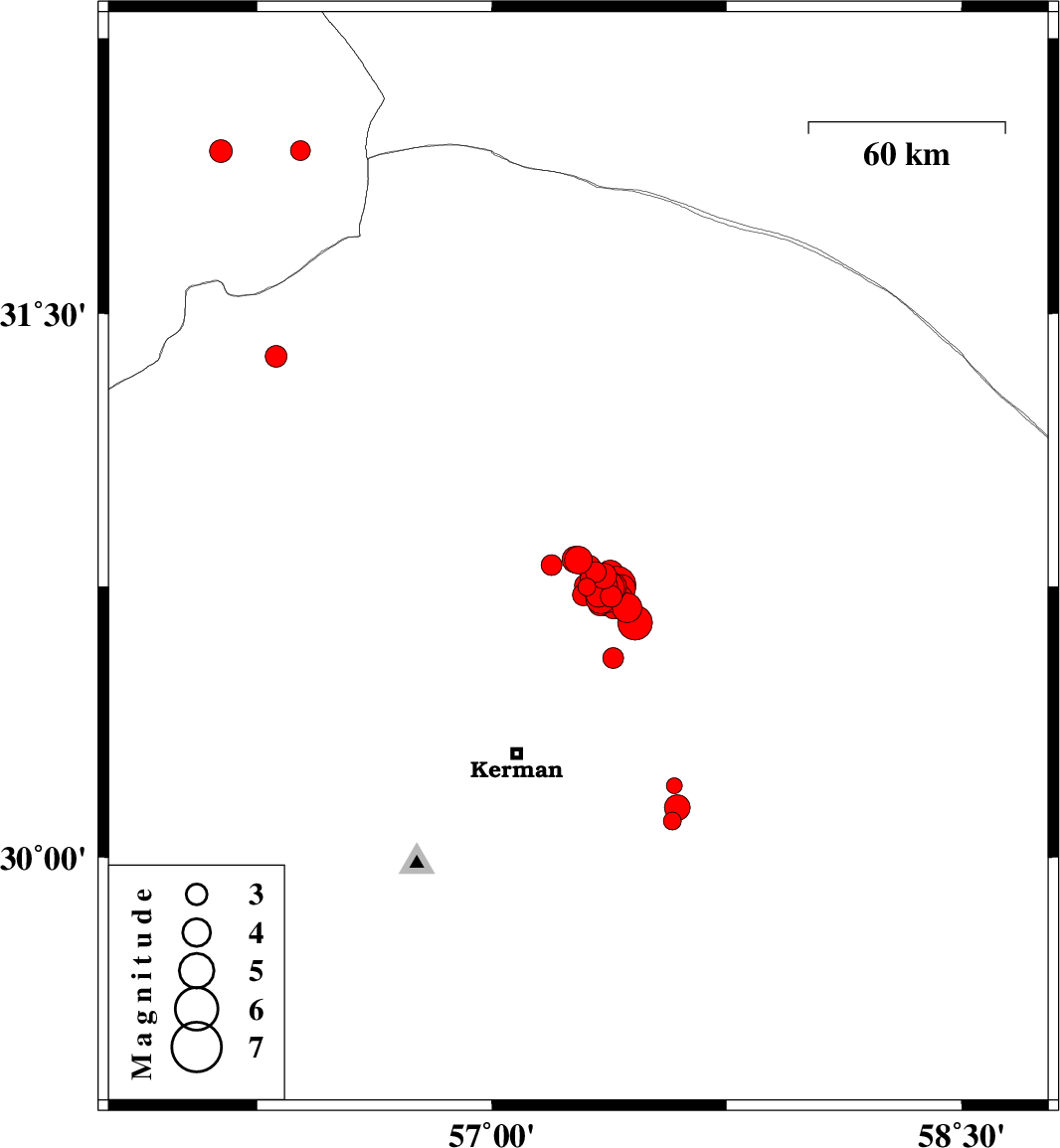 2017/12/02 10:50:40.4 14:20:40.4 30.75157.35615 ML4.1 Kerman Province, 58 km North-East of Kerman