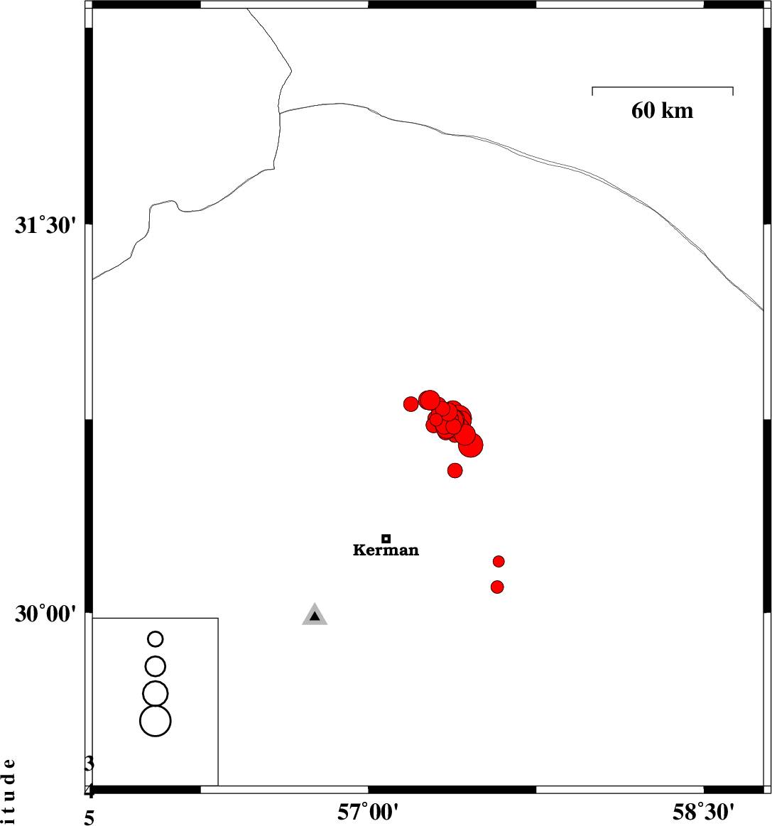 2017/12/02 10:50:40.4 14:20:40.4 30.75157.35615 ML4.1 Kerman Province, 58 km North-East of Kerman