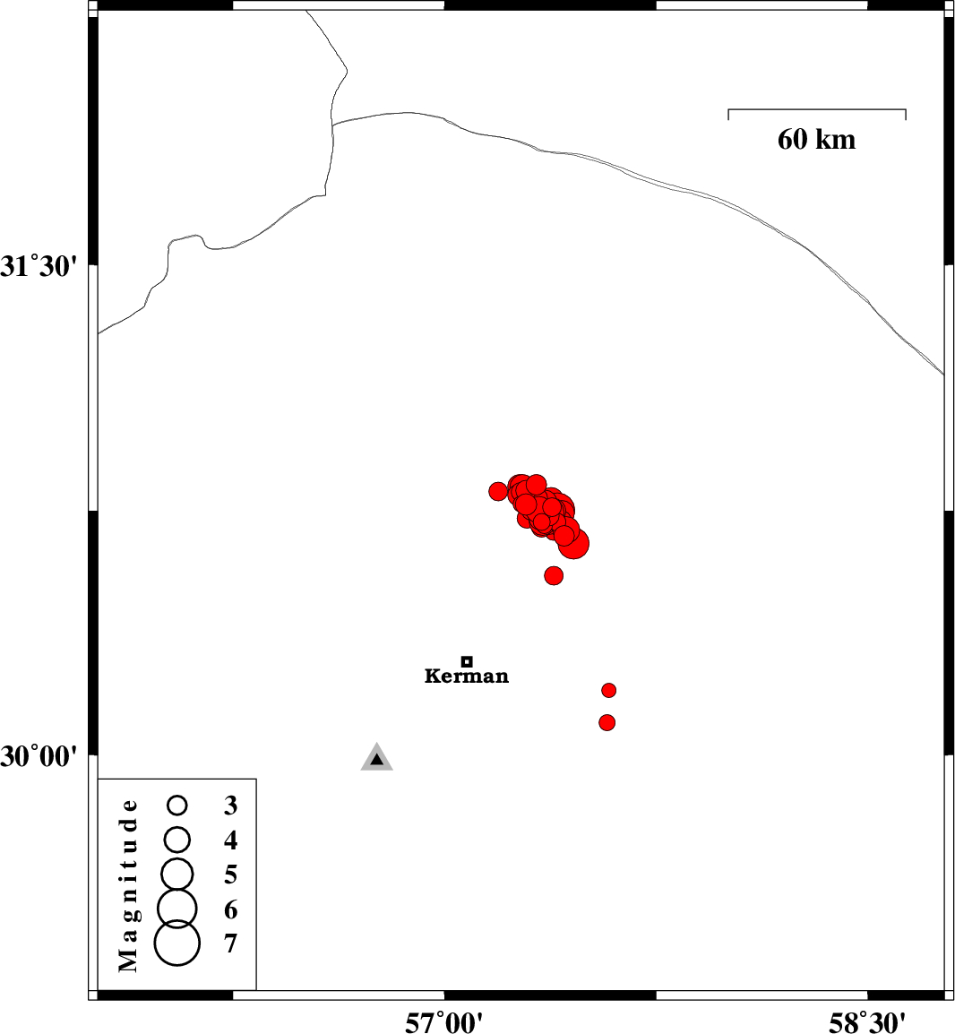 2017/12/02 10:50:40.4 14:20:40.4 30.75157.35615 ML4.1 Kerman Province, 58 km North-East of Kerman