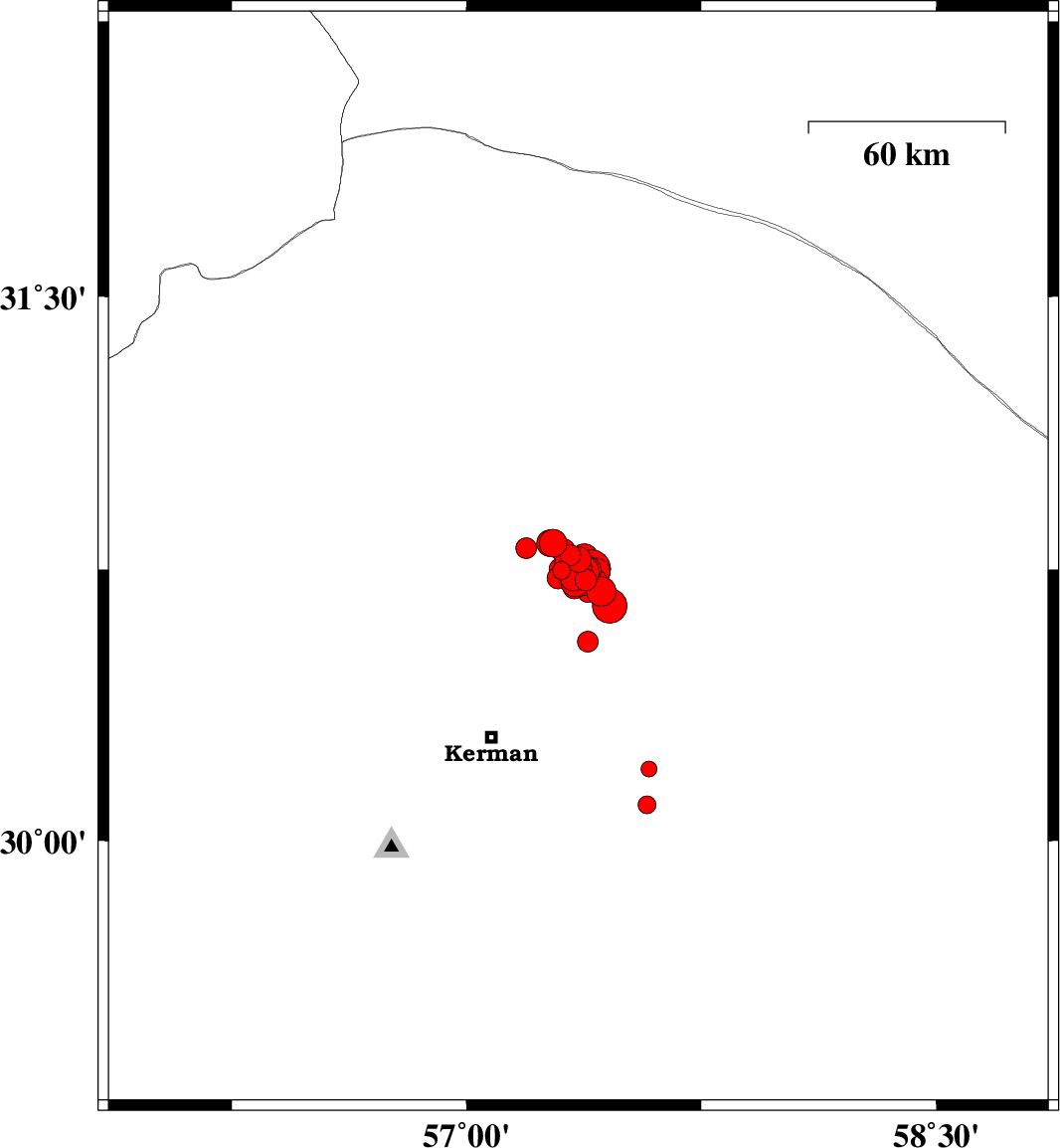 2017/12/02 10:50:40.4 14:20:40.4 30.75157.35615 ML4.1 Kerman Province, 58 km North-East of Kerman