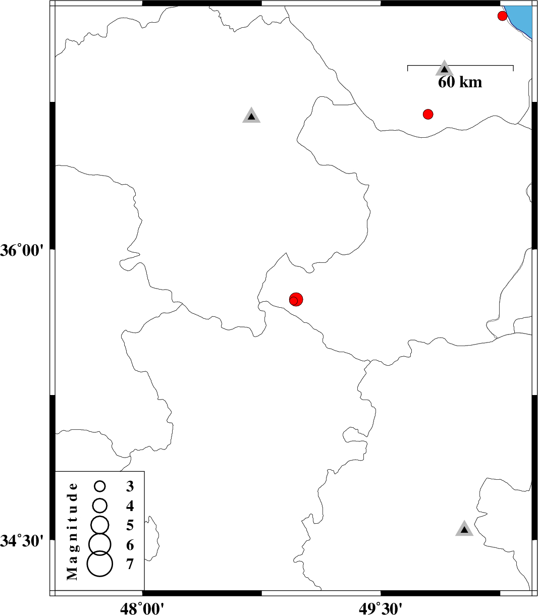 | 2017/12/03 | 23:42:59.8 | 03:12:59.8 | 35.735 | 48.95 | 15 | ML2.2 | Ghazvin Province, 40 km North of Razan | ||