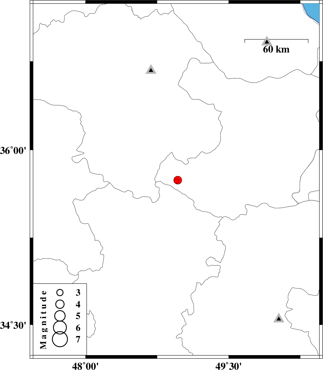 | 2017/12/03 | 23:42:59.8 | 03:12:59.8 | 35.735 | 48.95 | 15 | ML2.2 | Ghazvin Province, 40 km North of Razan | ||