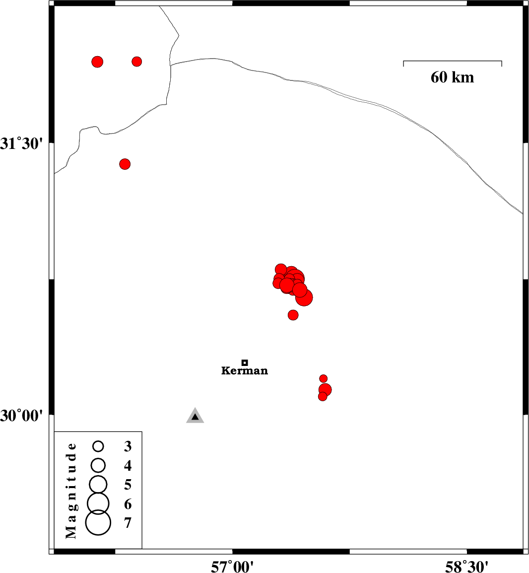 2017/12/01 04:33:27.2 08:03:27.2 30.72757.38814 ML2.7 Kerman Province, 57 km North-East of Kerman