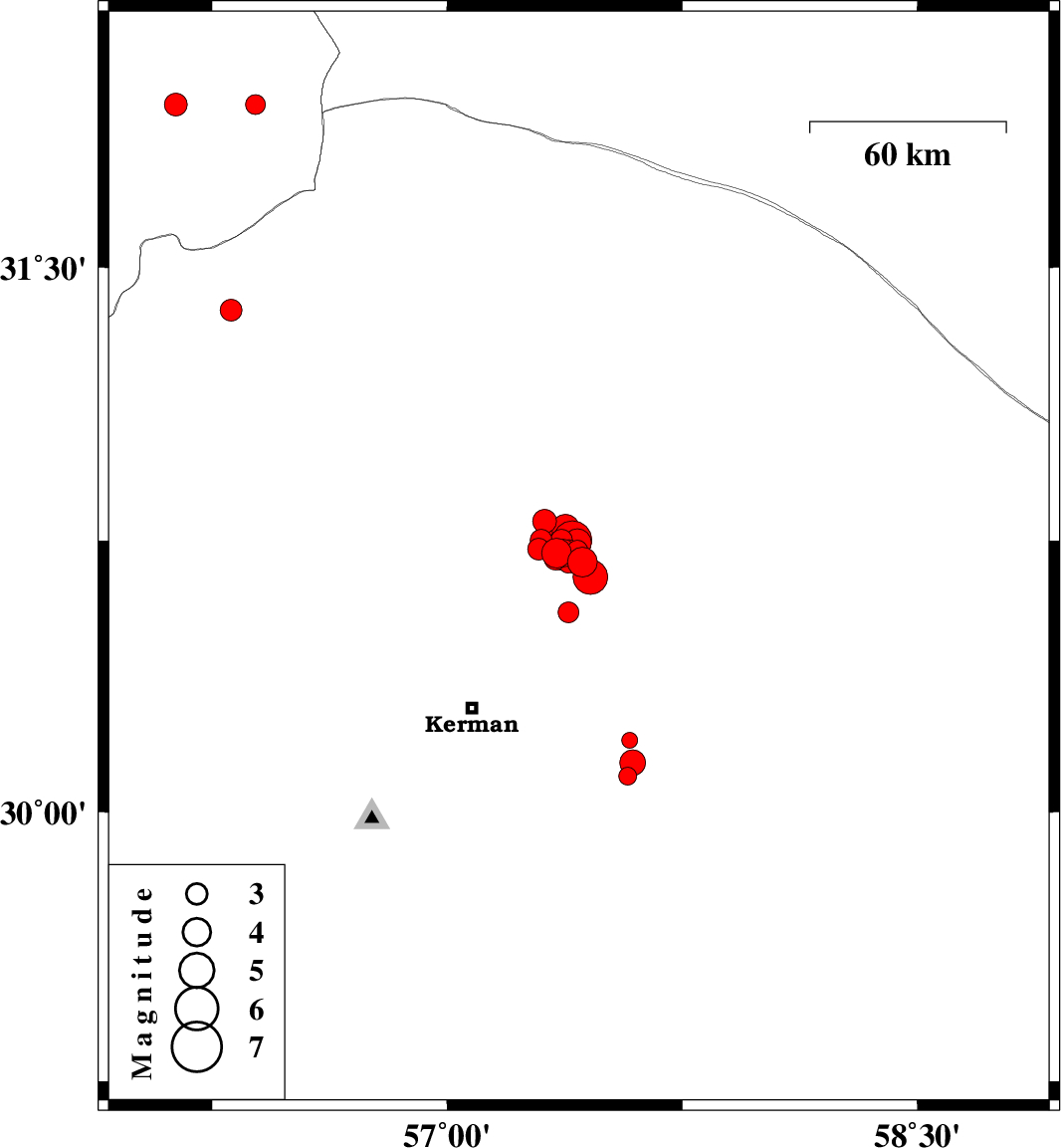 2017/12/01 04:02:09.2 07:32:09.2 30.71157.42216 ML3 Kerman Province, 57 km North-East of Kerman