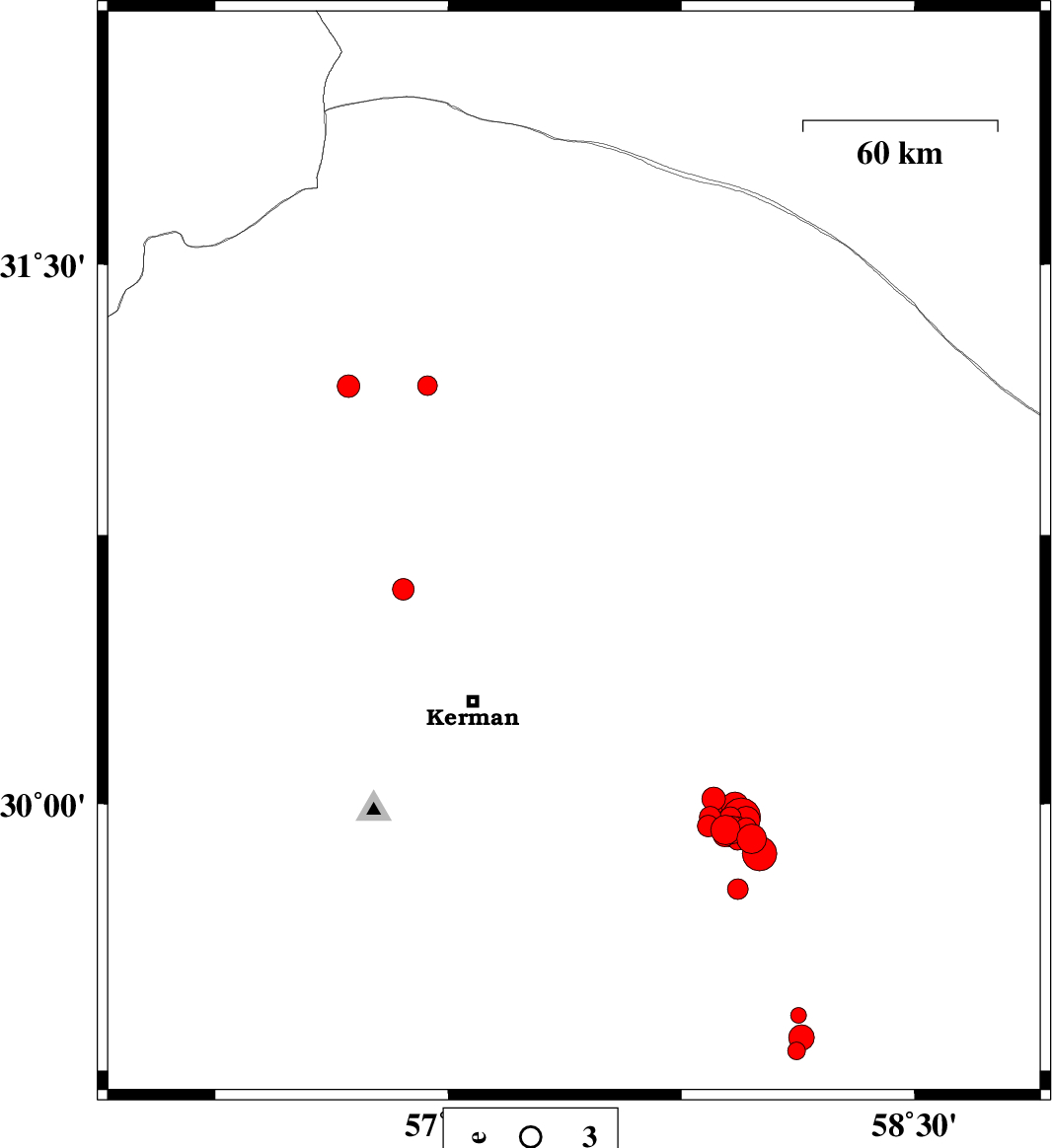 2017/12/01 04:02:09.2 07:32:09.2 30.71157.42216 ML3 Kerman Province, 57 km North-East of Kerman