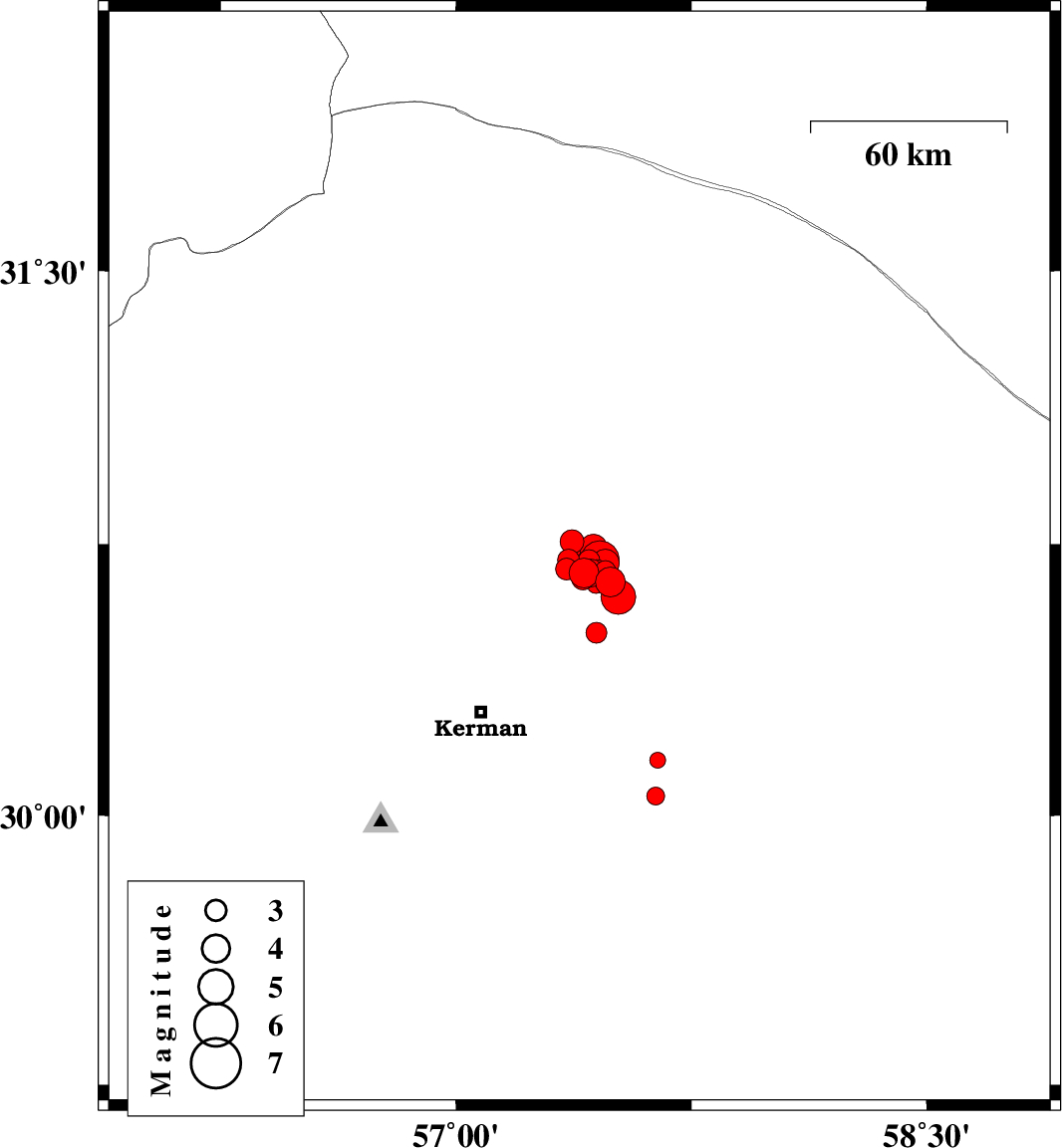 2017/12/01 04:33:27.2 08:03:27.2 30.72757.38814 ML2.7 Kerman Province, 57 km North-East of Kerman