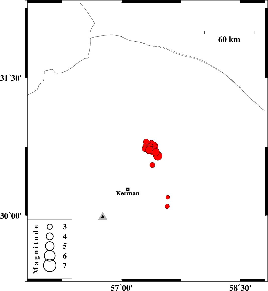 2017/12/01 04:02:09.2 07:32:09.2 30.71157.42216 ML3 Kerman Province, 57 km North-East of Kerman