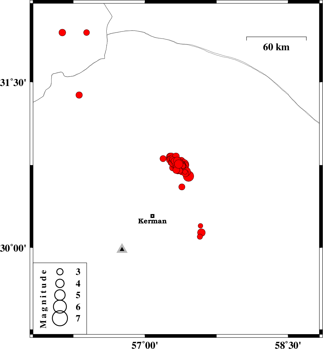 2017/12/02 10:50:40.4 14:20:40.4 30.75157.35615 ML4.1 Kerman Province, 58 km North-East of Kerman