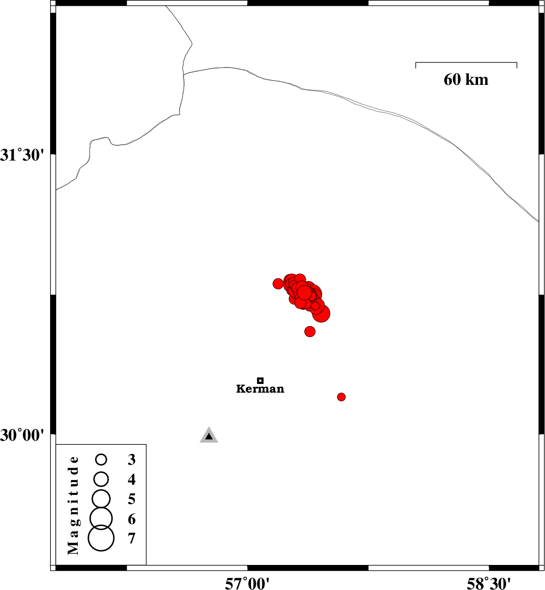 2017/12/02 10:50:40.4 14:20:40.4 30.75157.35615 ML4.1 Kerman Province, 58 km North-East of Kerman