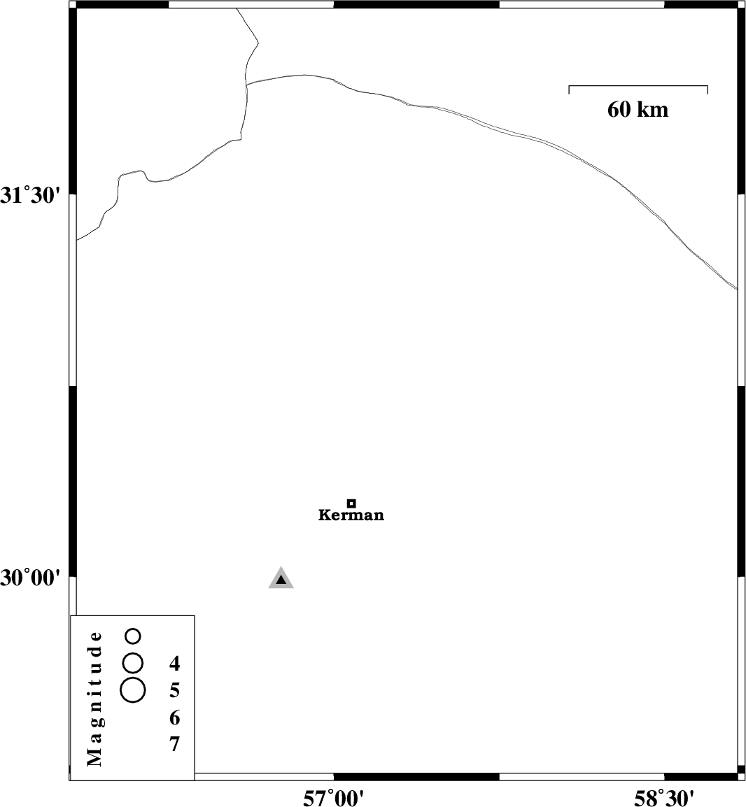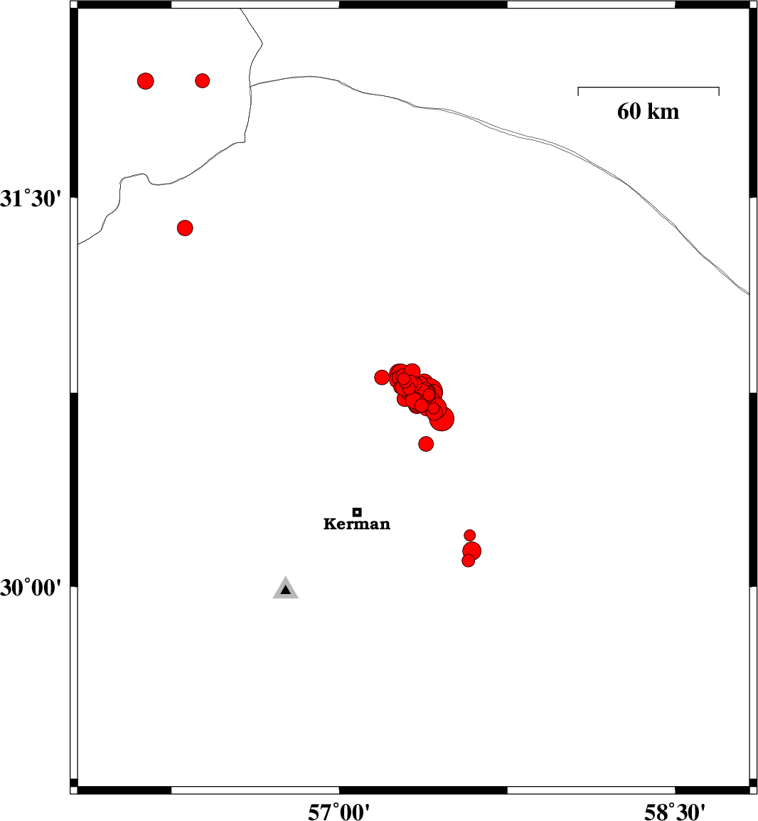2017/12/02 10:50:40.4 14:20:40.4 30.75157.35615 ML4.1 Kerman Province, 58 km North-East of Kerman