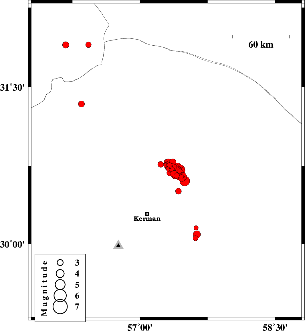 2017/12/02 10:50:40.4 14:20:40.4 30.75157.35615 ML4.1 Kerman Province, 58 km North-East of Kerman