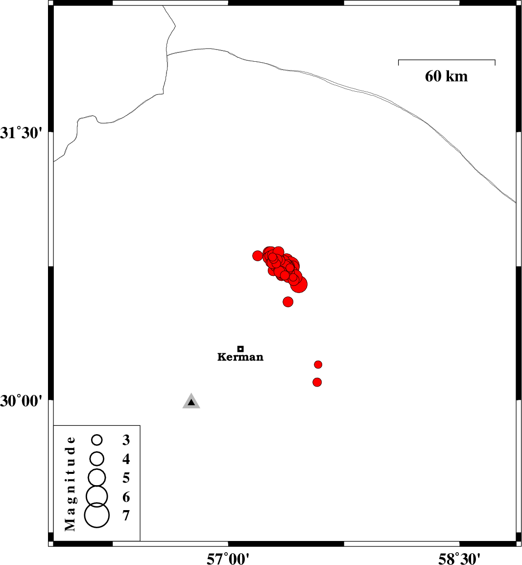 2017/12/02 10:50:40.4 14:20:40.4 30.75157.35615 ML4.1 Kerman Province, 58 km North-East of Kerman