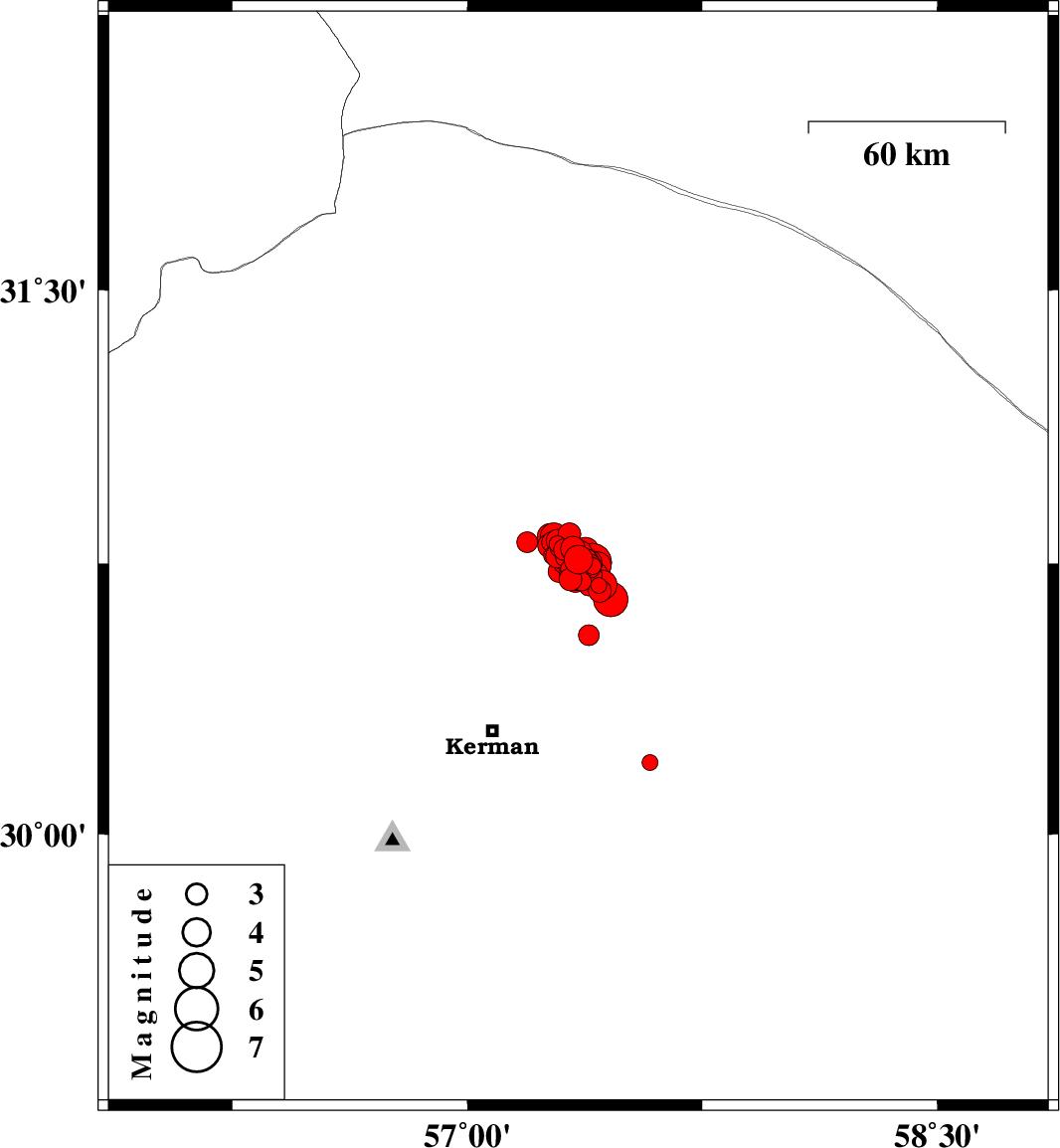 2017/12/02 10:50:40.4 14:20:40.4 30.75157.35615 ML4.1 Kerman Province, 58 km North-East of Kerman