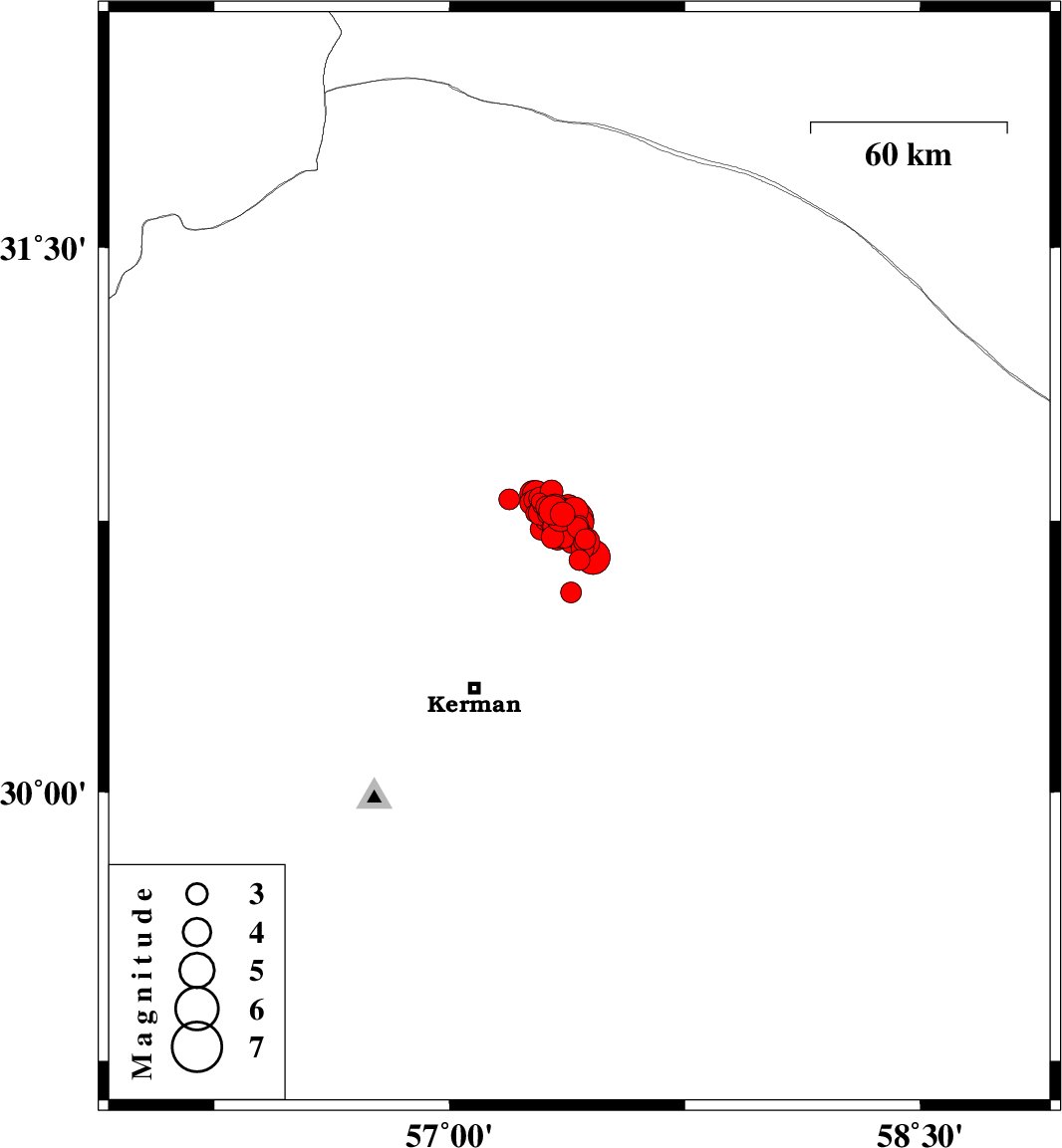 2017/12/02 10:50:40.4 14:20:40.4 30.75157.35615 ML4.1 Kerman Province, 58 km North-East of Kerman