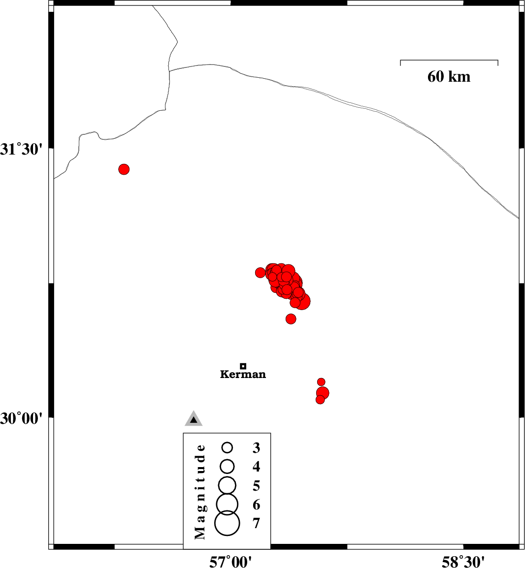 2017/12/02 10:50:40.4 14:20:40.4 30.75157.35615 ML4.1 Kerman Province, 58 km North-East of Kerman