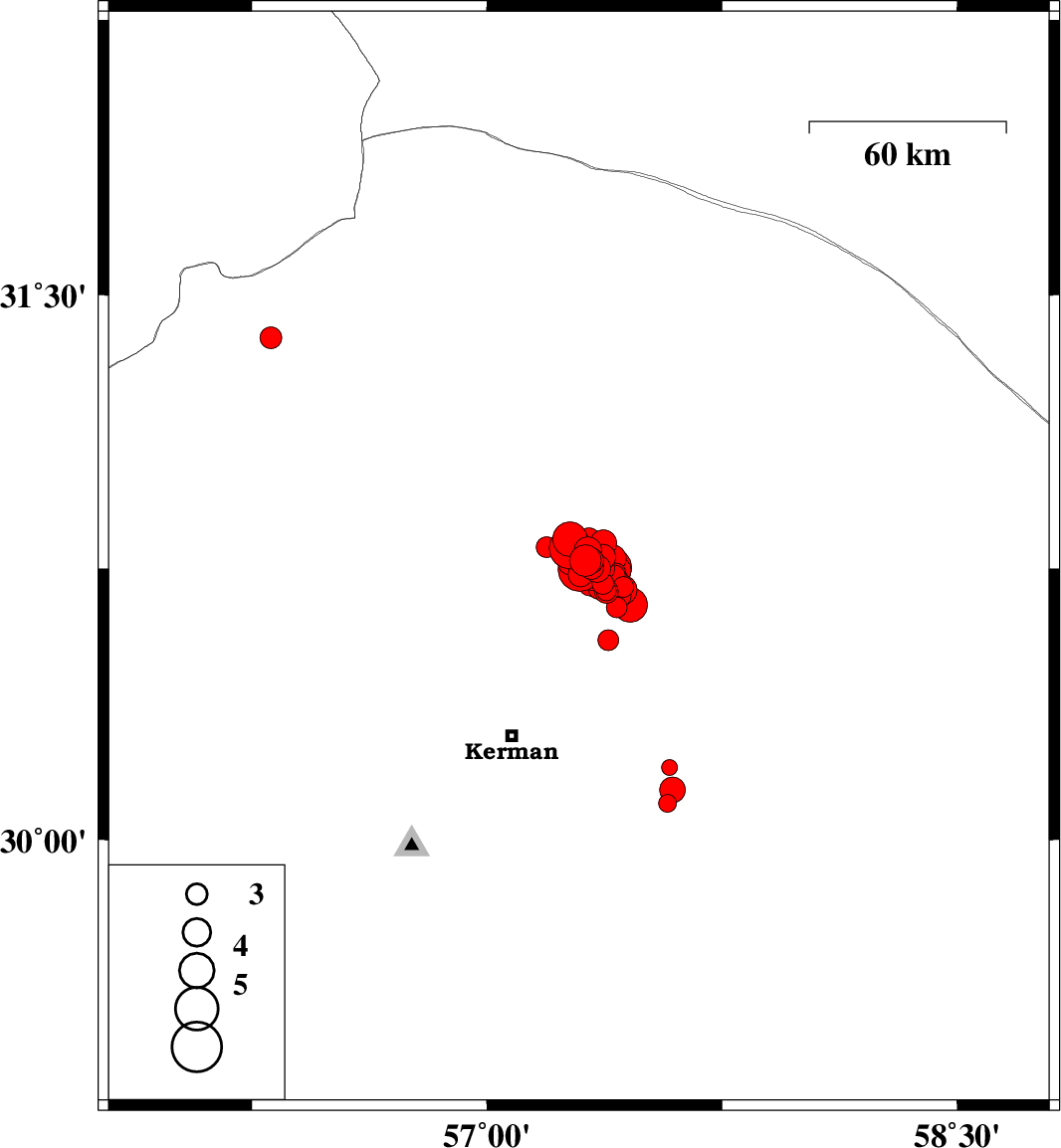 2017/12/02 10:50:40.4 14:20:40.4 30.75157.35615 ML4.1 Kerman Province, 58 km North-East of Kerman