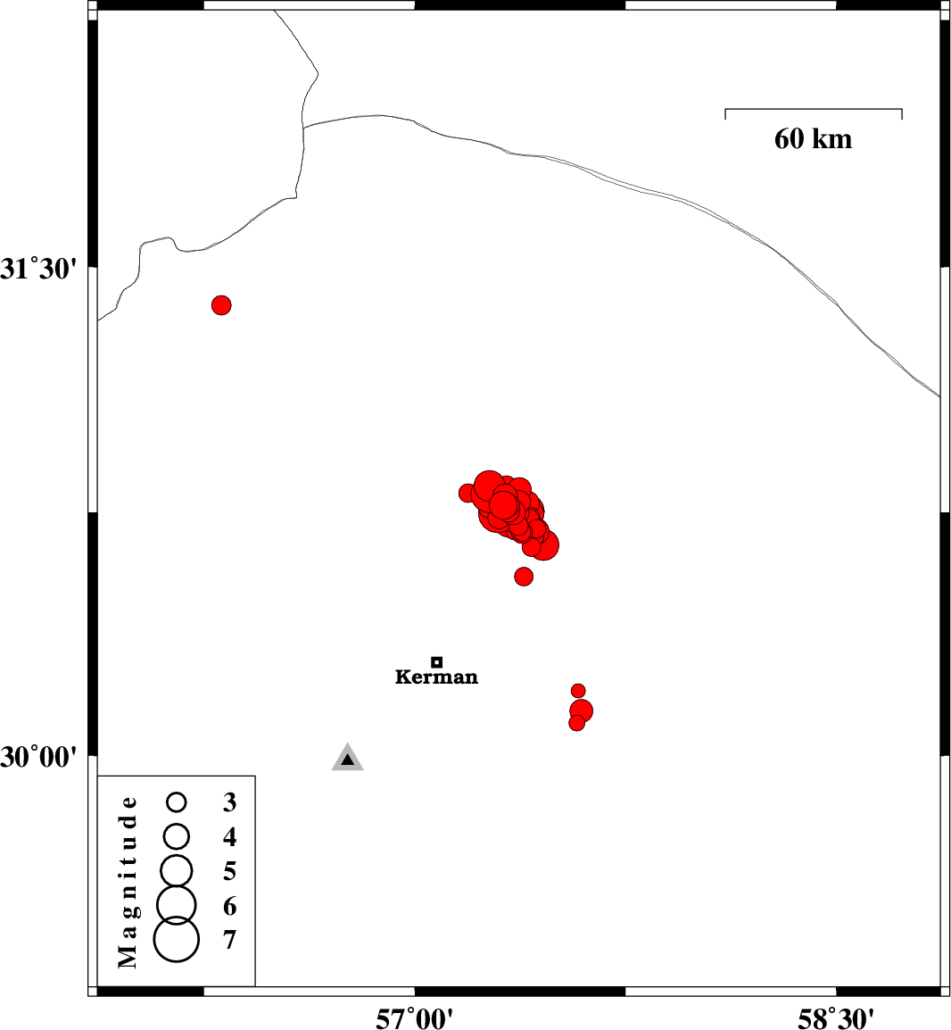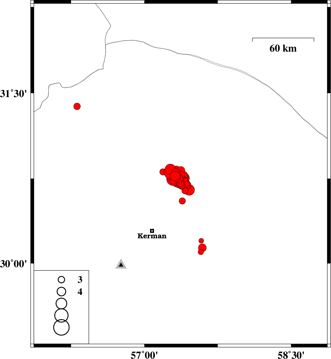 2017/12/02 10:50:40.4 14:20:40.4 30.75157.35615 ML4.1 Kerman Province, 58 km North-East of Kerman